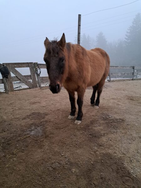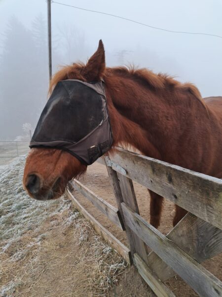 Als Dani morgens zum Stall kam, wurde sie freundlich wiehernd von Gowinda und Wallace begrüßt, die sich gleich über ihr Müsli hermachten, das Dani für sie dabei hatte. Während sie fraßen, legte Dani frisches Heu nach, kontrollierte die Tränke und mistete ab. Dann war Huf- und Fellpflege angesagt und nachdem die erledigt war, verabschiedete sich Dani mit ein paar Streicheleinheiten von den beiden. 🙂