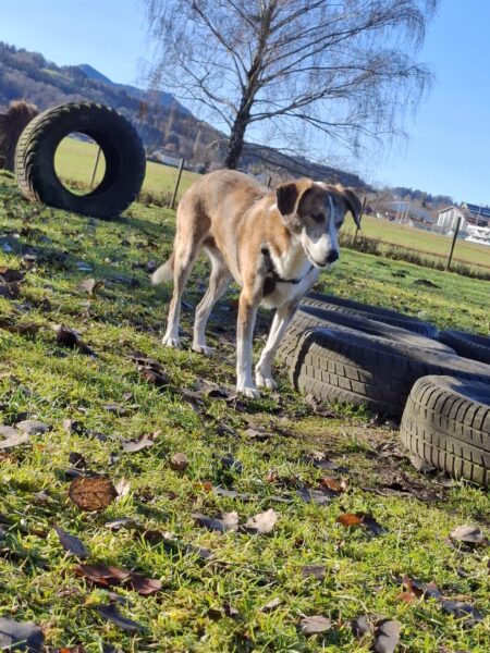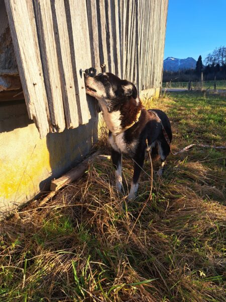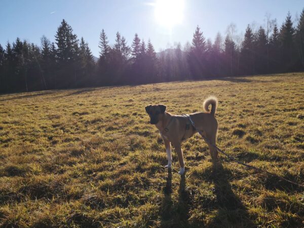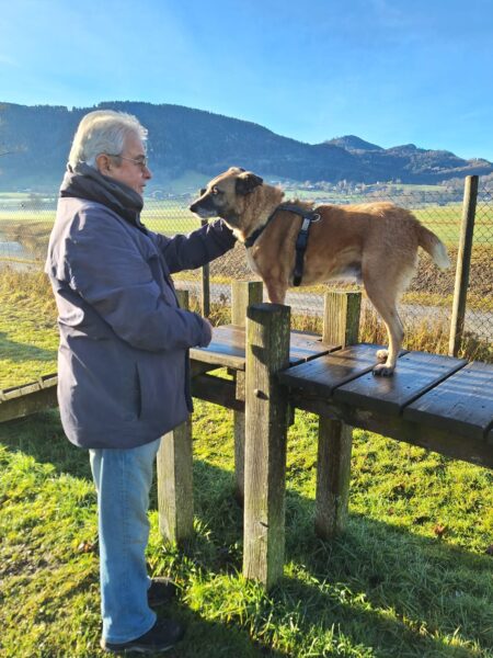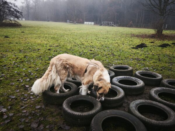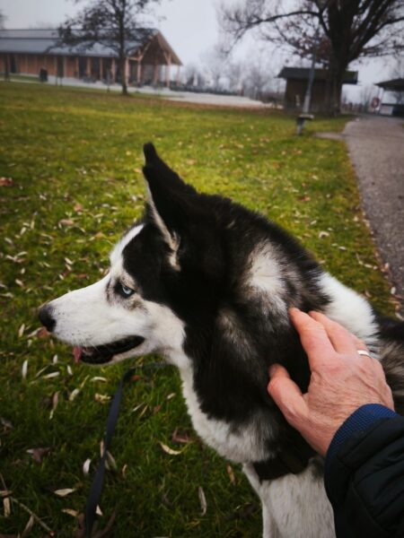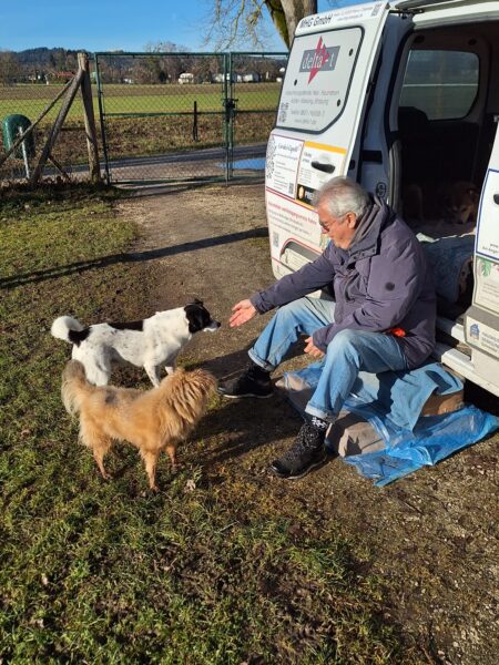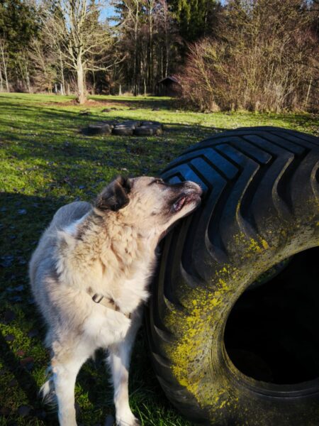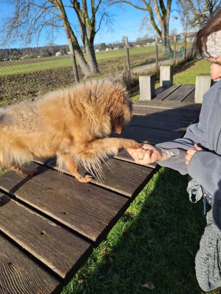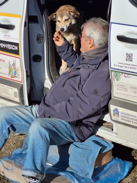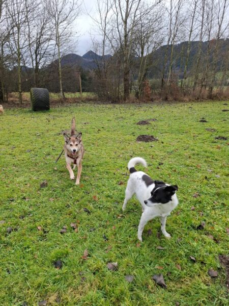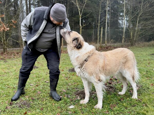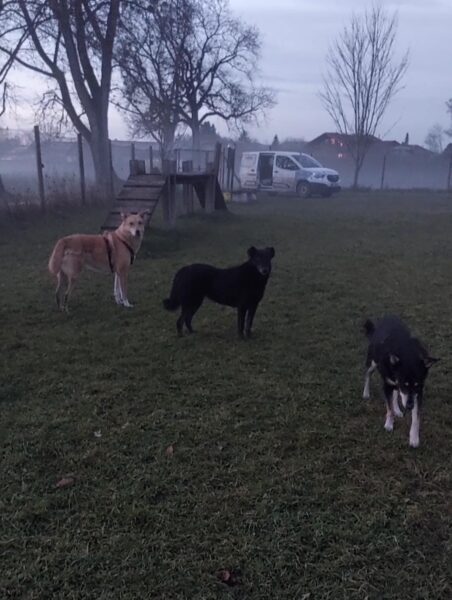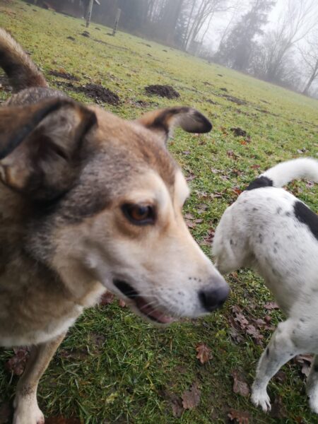 Aslan strahlte über`s ganze Gesicht, als er Chris im Hof entdeckte. Er machte lautstark auf sich aufmerksam und so fuhr Chris gleich mit ihm zum Hundeplatz. Trotz Nebel und Dämmerung hatten die beiden eine schöne gemeinsame Zeit beim Herumbummeln, Leckerlies suchen und Kuscheln. 🙂