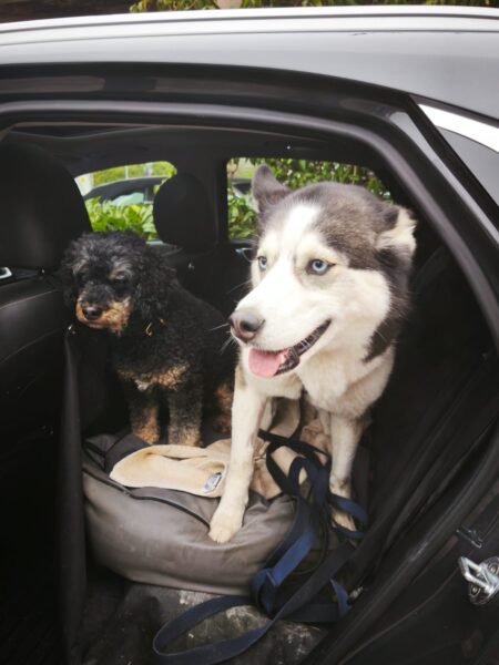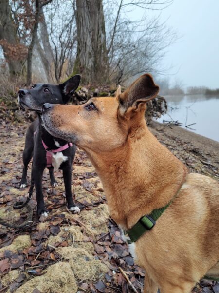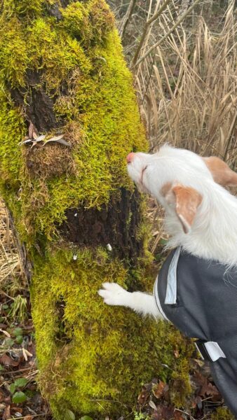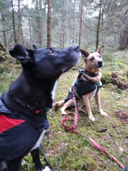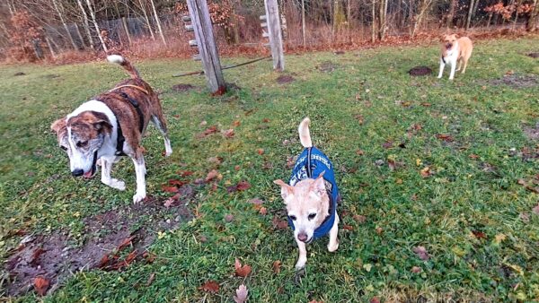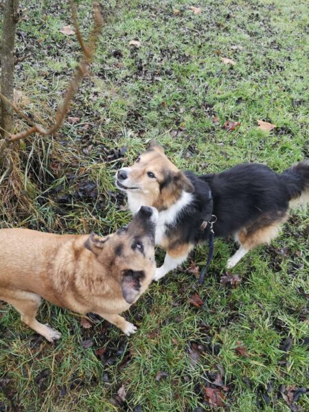 Gunda und Renate sind am Nachmittag mit Momo und Aika zum Waldweg hinter der Raststätte gegangen. An ihren Lieblingsstellen haben sie Leckerchen versteckt, die die Mädels zügig einsammelten und natürlich wurde auch viel gekuschelt. 🙂