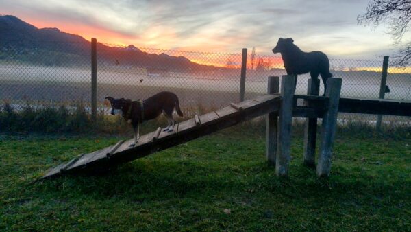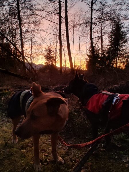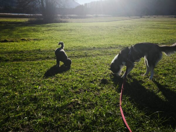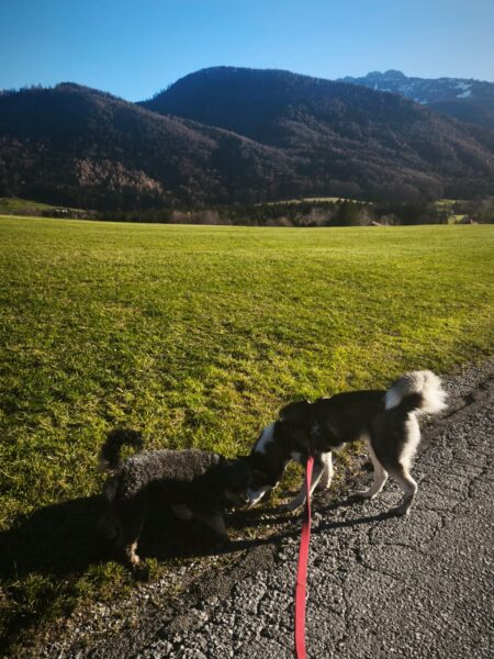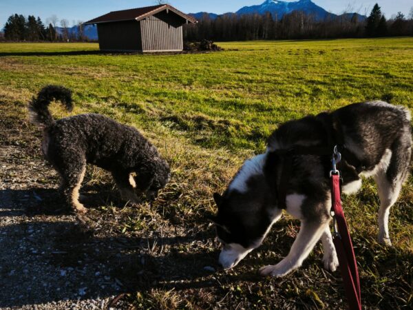 Last but not least gingen Chris und Lukas mit Bella und Santana auf einen Abendspaziergang in Richtung Übersee. Im Schein der Stirnlampen schnüffelten die Hunde einträchtig am Wegesrand und gaben sich gegenseitig genug Raum, dass es ein sehr entspannter und ruhiger Ausflug wurde. 🙂