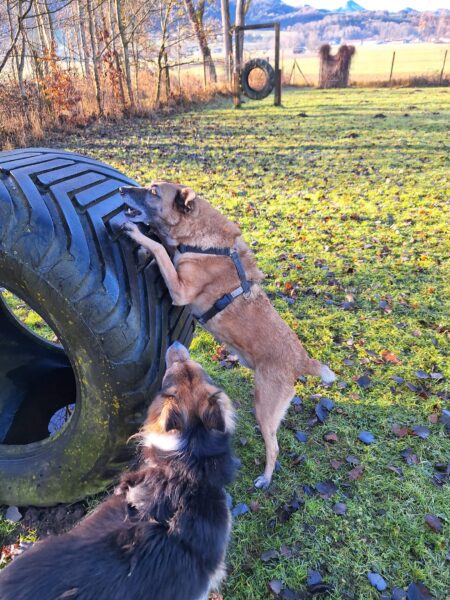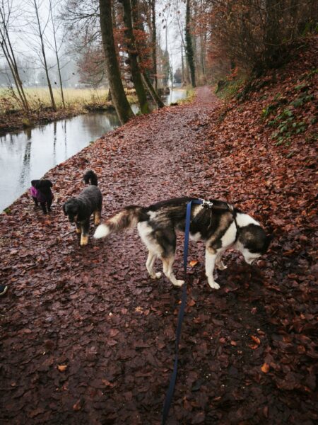 Spazieren waren Kirana, Elfie, Lucky 2.0, Momo & Aika, Aslan, Sam und Santana. Sie und die anderen Hunde verbrachten auch viel Zeit im Hof und in den Ausläufen.