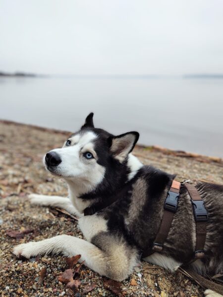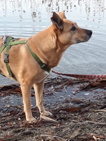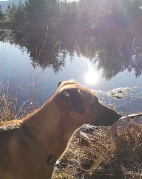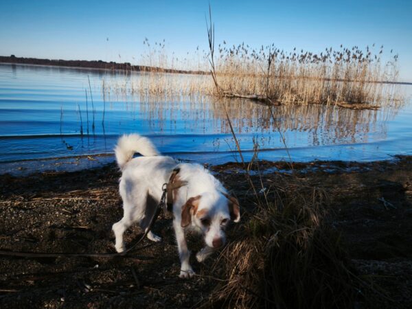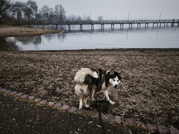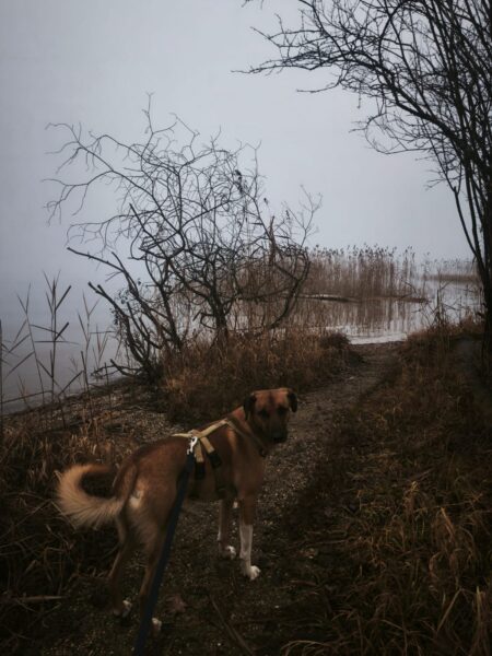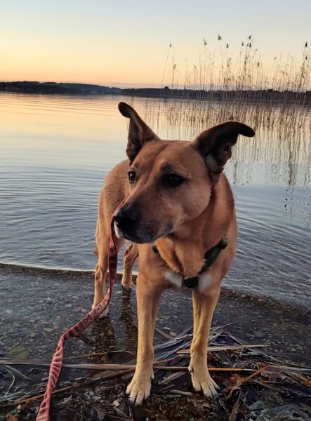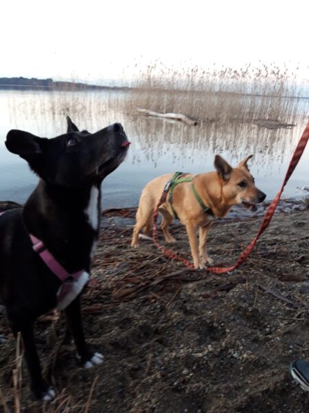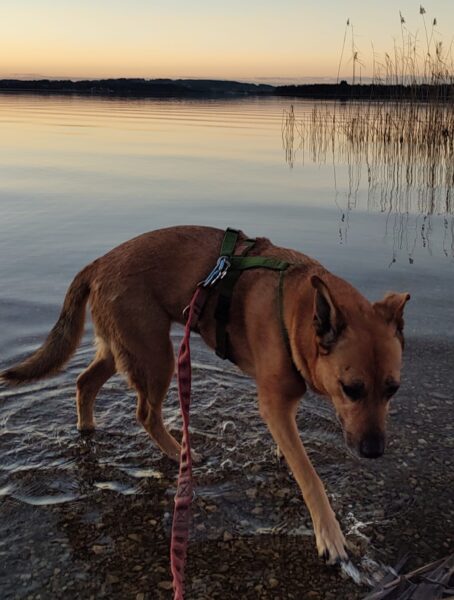 Gunda ging nachmittags mit Kirana zum Chiemsee, wo die wie immer in den Wiesen eifrig nach Mauselöchern guckte und munter am Strand entlang schnüffelte. Zwischendurch freute sie sich über Streicheleinheiten und Leckerchen. 🙂