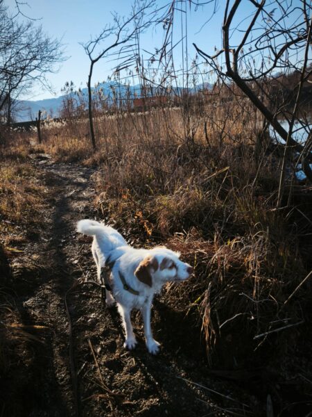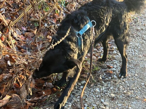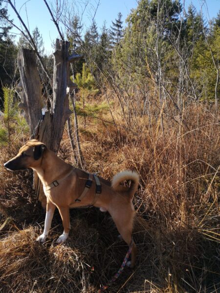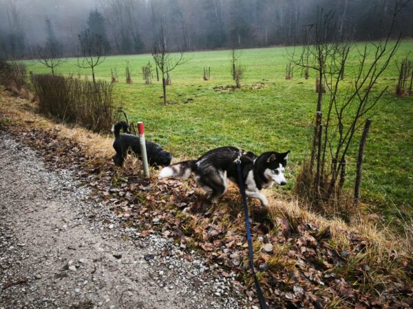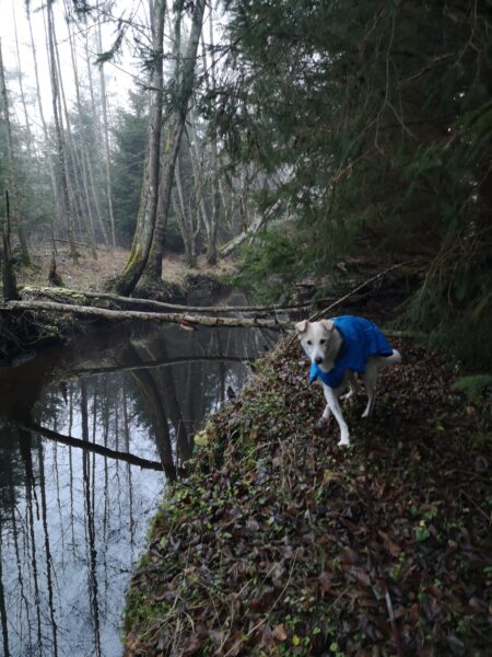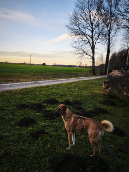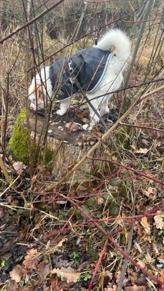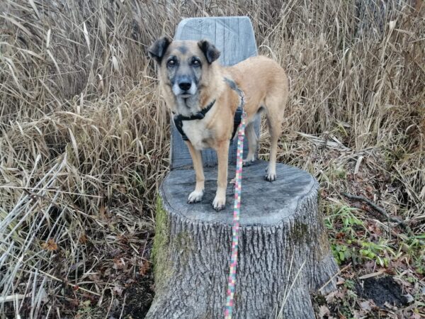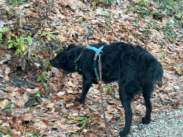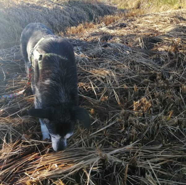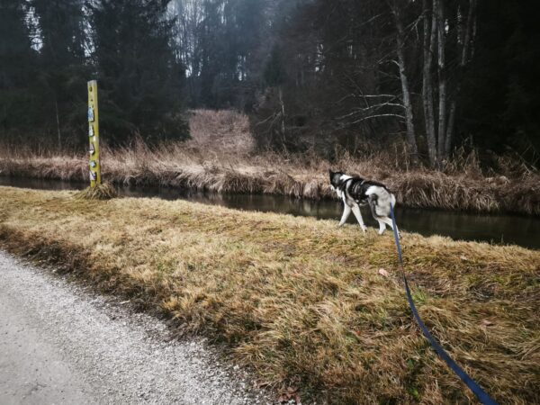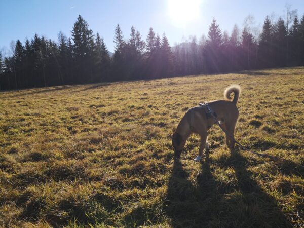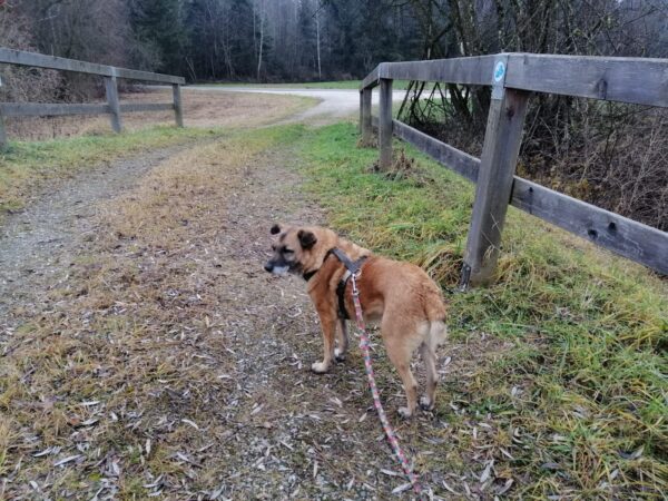 Brigitte war mit Elfie in Richtung Bernau unterwegs, wo die kleine Maus munter im Gestrüpp am Wegesrand herumschnüffelte und begeistert nach ausgelegten Leckerlies suchte. Einen vorbeifahrenden Radfahrer und ein Auto verbellte sie, aber Brigitte hatte die Leine schon vorher kurz genug genommen und war mit ihr so gut es ging ausgewichen, so dass es keinerlei Probleme gab. Zwischendurch freute sich Elfie über viele Streicheleinheiten und beide genossen den Spaziergang sehr. 🙂