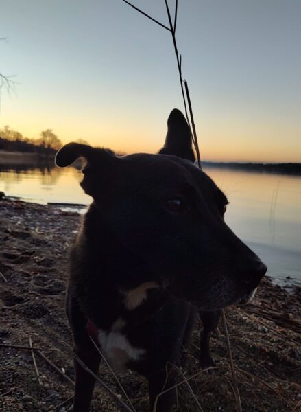 Danach freute sich Sam über eine Gute-Nacht-Runde mit Chris in Richtung Übersee. Er schnüffelte auf dem Weg entlang und genoss es vor allem, mit Chris zu kuscheln und ein paar Leckerchen im Gras zu erschnüffeln. 🙂