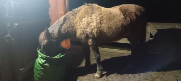 Abends war Biggi (zum ersten Mal alleine) im Stall. Wallace wollte erst bei Gowinda in die Box, Biggi brachte ihn aber ruhig in seine, dann fütterte sie die beiden und verabreichte Wallace seine Augentropfen, alles klappte gut. Als sie fuhr, knabberten Wallace und Gowinda zufrieden am frisch aufgelegten Heu. 🙂