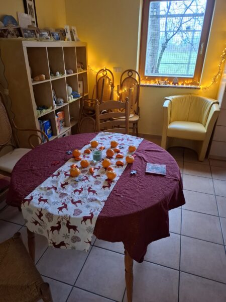 Danach besuchte Brigitte Rosalie, Lucky & Balto, die sie freudig begrüßten. 🙂 Als sie auch bei Fio, Flora & Grisu noch zum Kuscheln vorbeischaute, freute sie sich sehr, dass Fio diesmal auch zu ihr ins Zimmer kam und sich streicheln ließ, während Flora und Grisu miteinander herumscherzten. 🙂