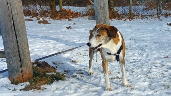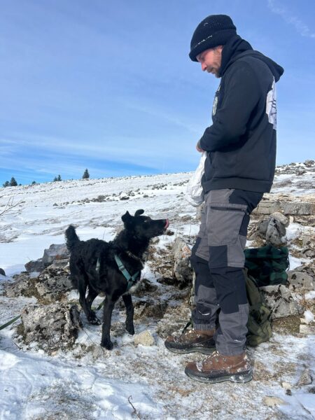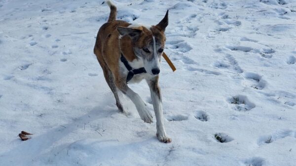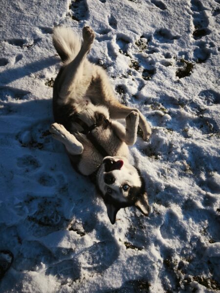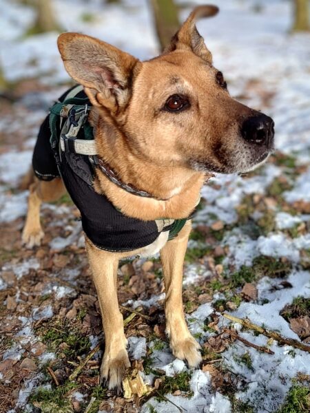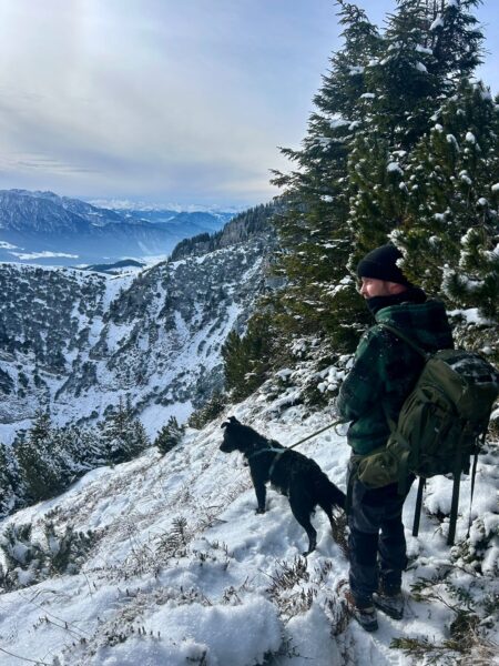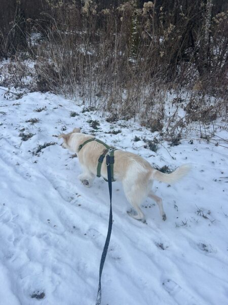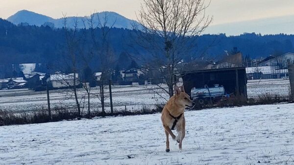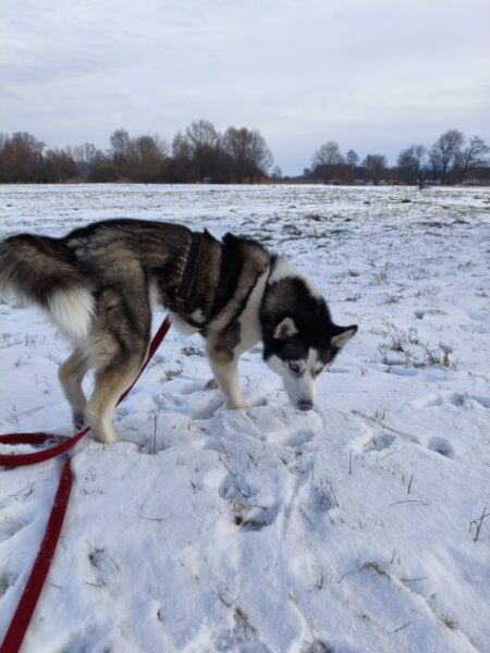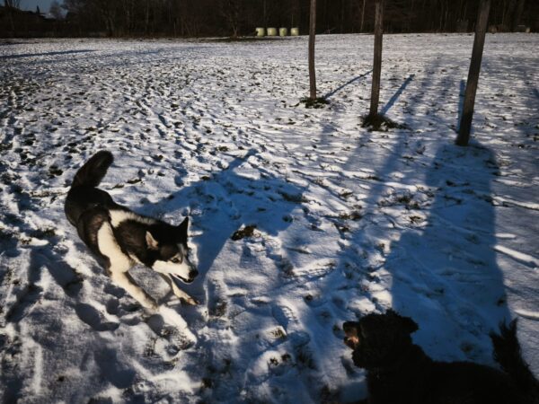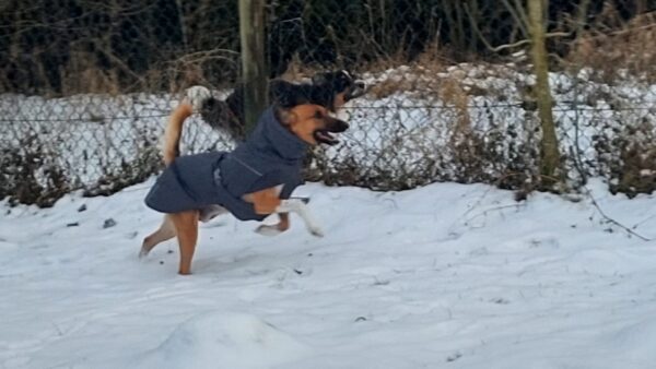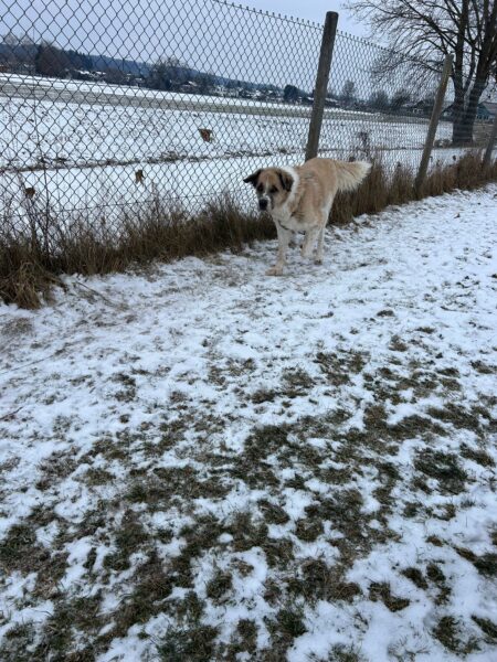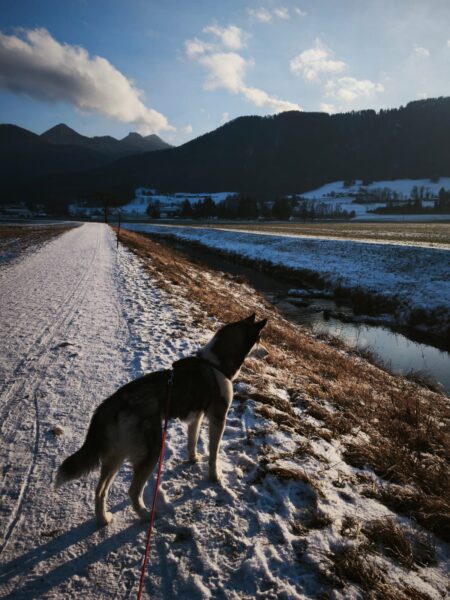 Santana freute sich riesig, Kerstin schon in der Früh zu sehen und mit ihr raus zu dürfen. Die beiden waren auf der großen Wiese und beim kleinen See dahinter, wo Santana vielen Spuren im Schnee nachschnüffelte und immer weider gerne zum Kuscheln stehen blieb. Natürlich gab es auch ein paar Leckerlies zu finden und so kam er entspannt und zufrieden zurück ins TierHeim, wo schon sein Frühstück bereit stand. 🙂