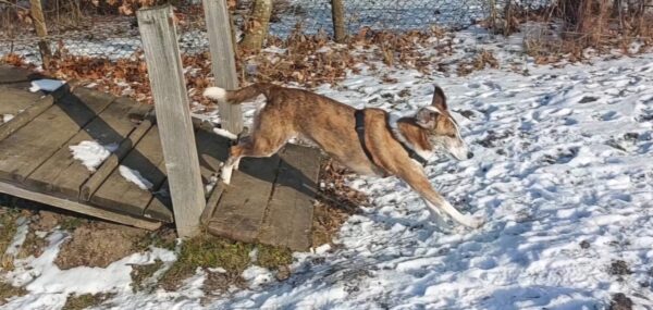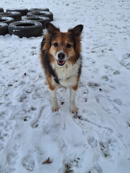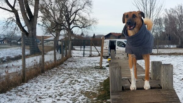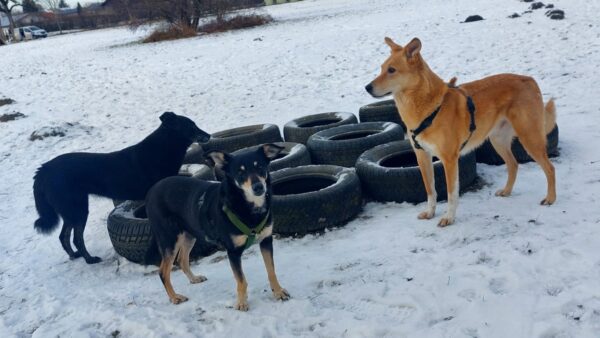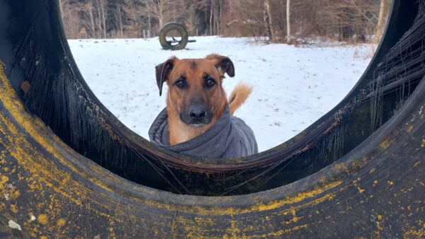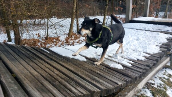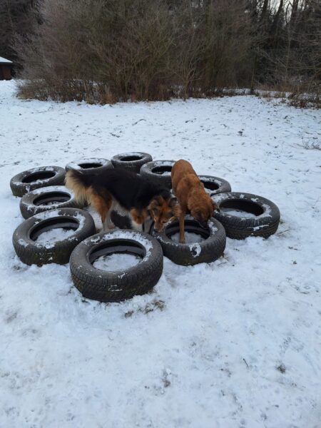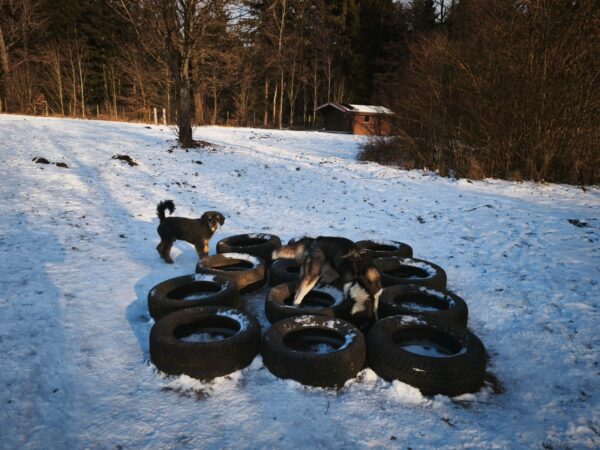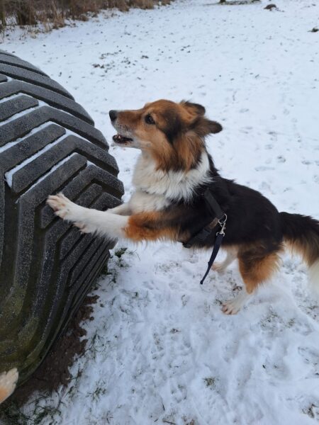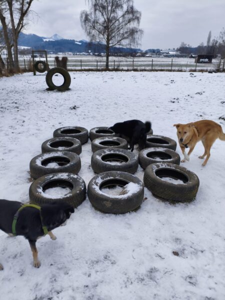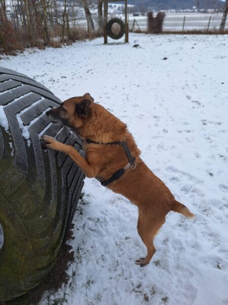 Mit Aslan fuhr Kerstin gleich danach zum Hundeplatz. Es waren viele Leute unterwegs und Kerstin fand es schön zu sehen, wie aktiv und fröhlich Aslan herumsauste, am Zaun freundlich mit Menschen und Hunden kontaktete und zwischendurch zu den Reifen flitzte, um seine geliebte Leckerliesuche abzusammeln. 🙂