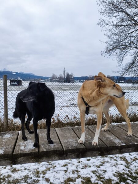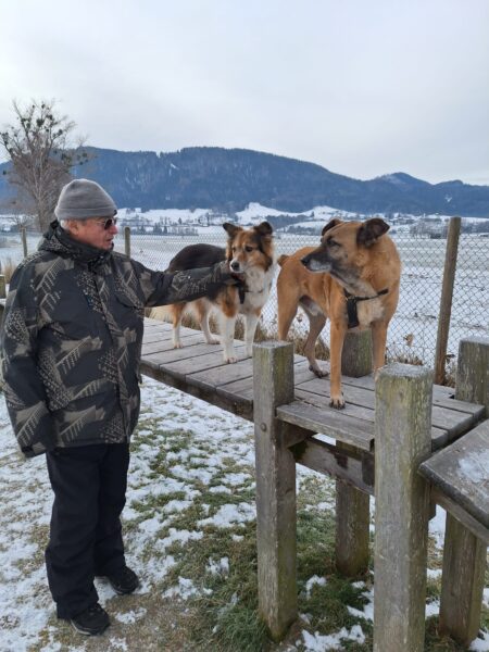 Mit Kirana und Pablo war Carsten erst zum Austoben auf dem Hundeplatz und ging dann mit ihnen die Fabinger Hof-Runde. Alle hatten eine schöne Zeit miteinander. 😀