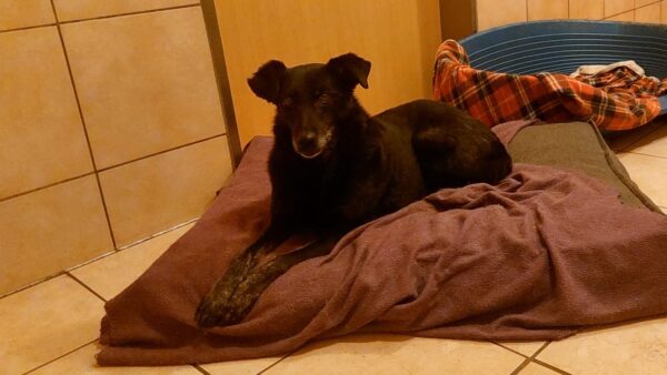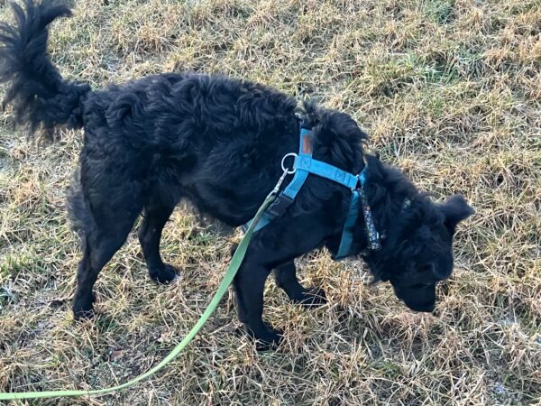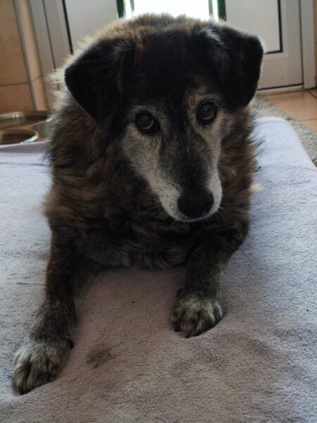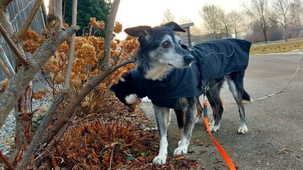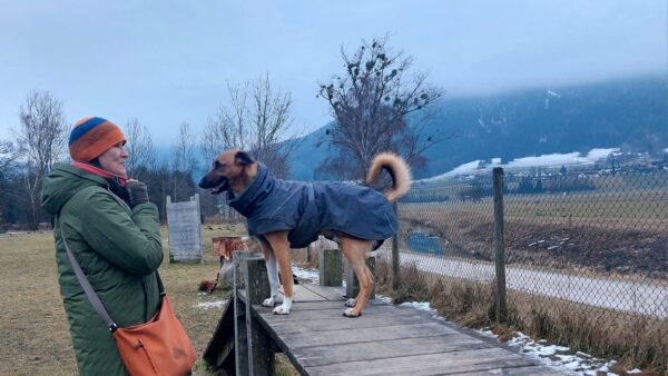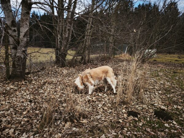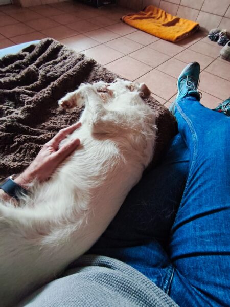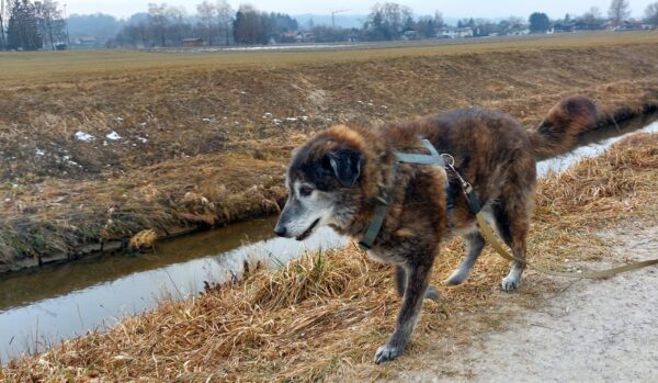 Heinz ging mittags mit Elfie zum Medical Park. Elfie freute sich sehr über den Spaziergang und obwohl das Wetter neblig-trüb war, hatte sie viel Spaß beim ausgiebigen Herumschnüffeln und Leckerchen suchen und genoss schöne Kuschelpausen mit Heinz. 🙂