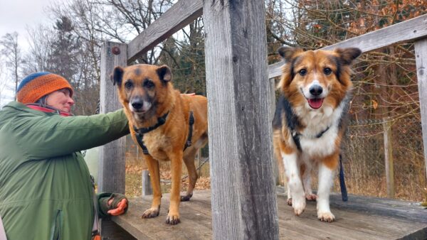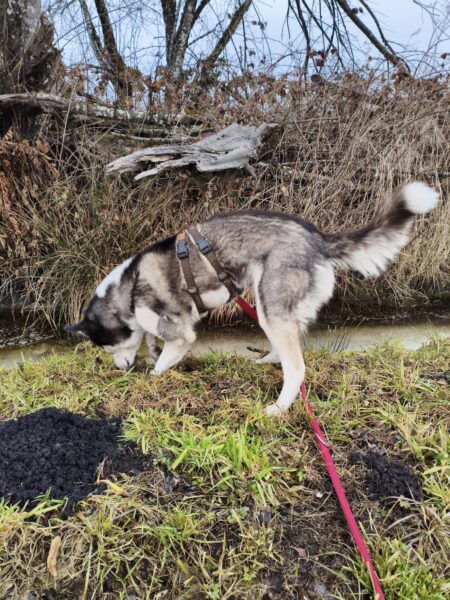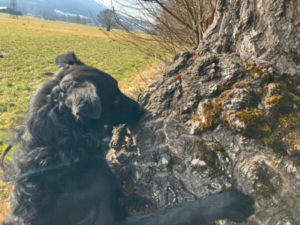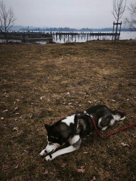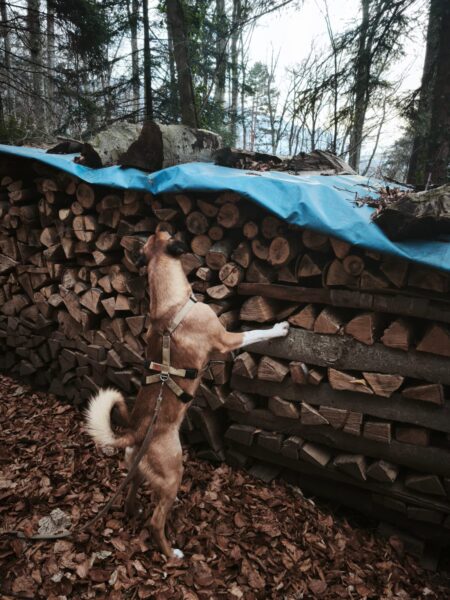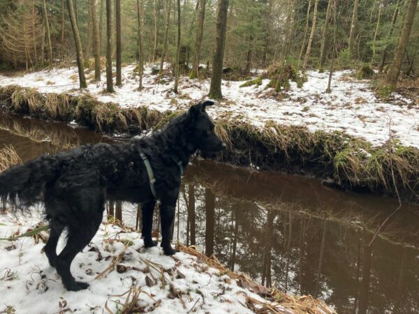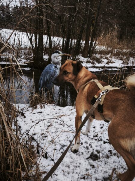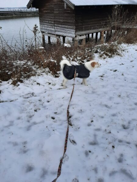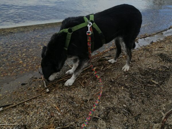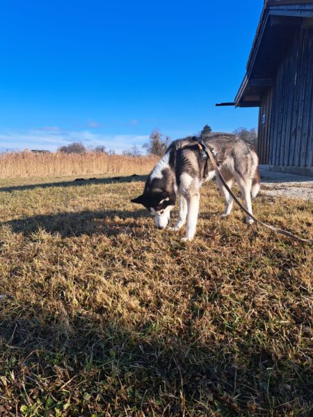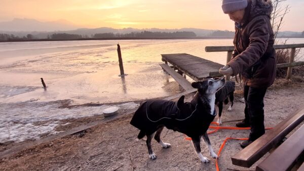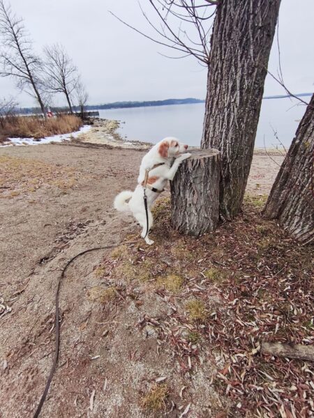 Danach gingen Heinz und Kirana rund um den Förchensee spazieren, wo Kirana neugierig im Gebüsch herumschnüffelte, unzählige Mauselöcher erkundete und begeistert nach Leckerlies suchte. Zwischendurch hatten die beiden viel Spaß beim Kuscheln. 🙂
