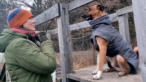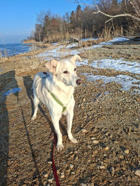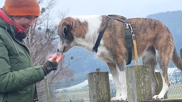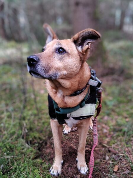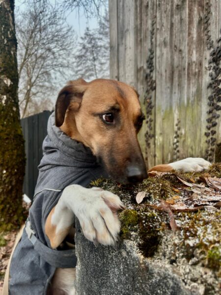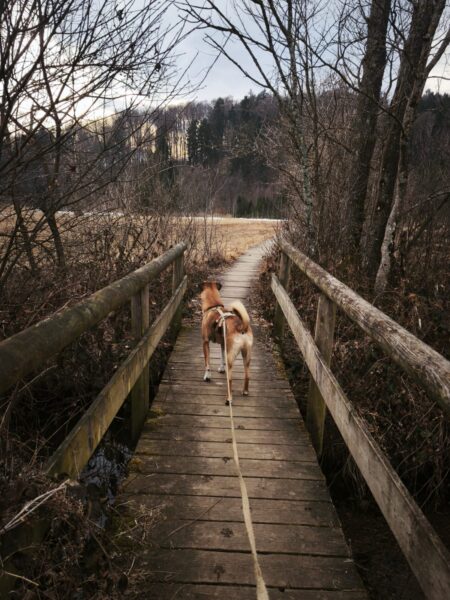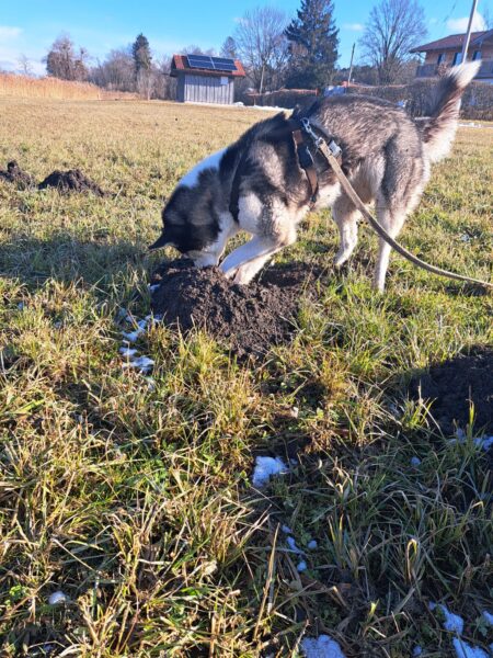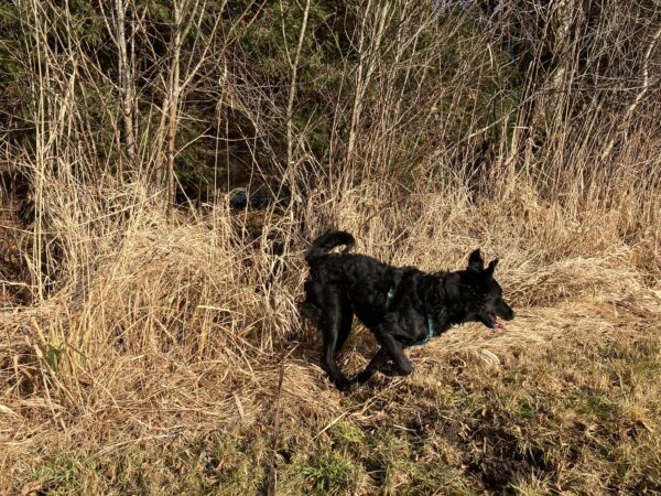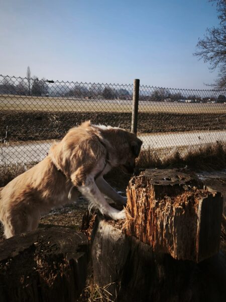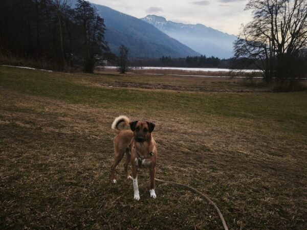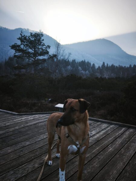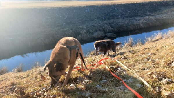 Danach gingen Heinz und Kirana rund um den Förchensee spazieren, wo Kirana neugierig im Gebüsch herumschnüffelte, unzählige Mauselöcher erkundete und begeistert nach Leckerlies suchte. Zwischendurch hatten die beiden viel Spaß beim Kuscheln. 🙂