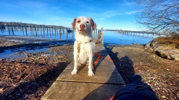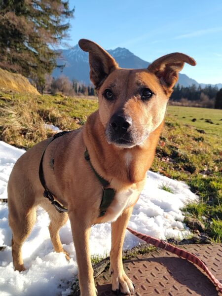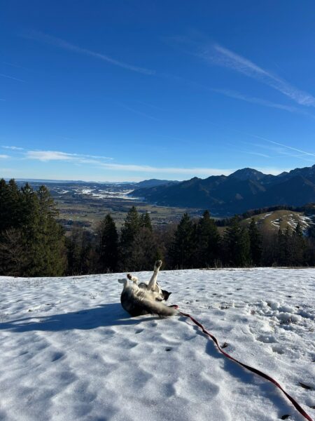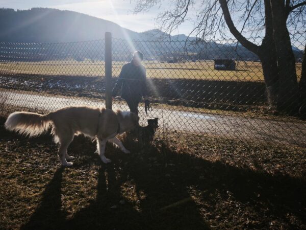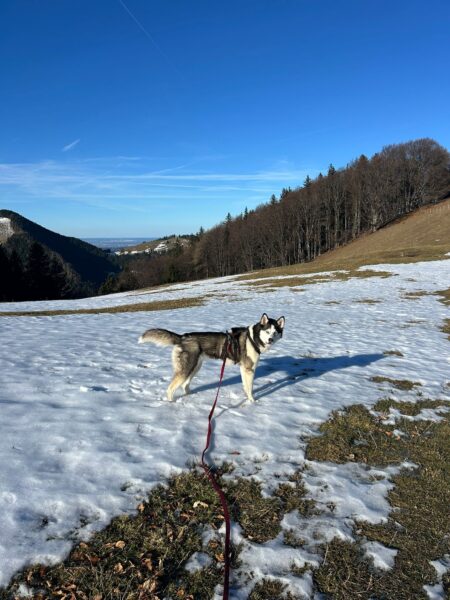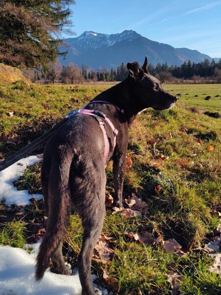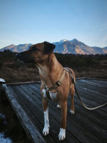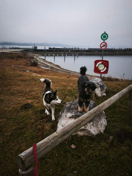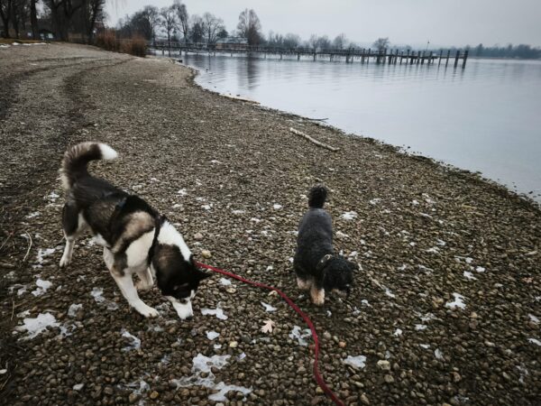 Andrea und Sophie bekamen von Dani eine Gassigängereinführung mit Elfie. Dani erklärte unsere Kommandos und was uns im Umgang mit den Hunden wichtig ist. Die beiden verstanden alles sehr gut und so konnten sie mit Elfie weiter in Richtung Übersee gehen, die sich über den Ausflug freute. Elfie schnüffelte viel am Wegesrand und freute sich unterwegs über Leckerchen. 🙂