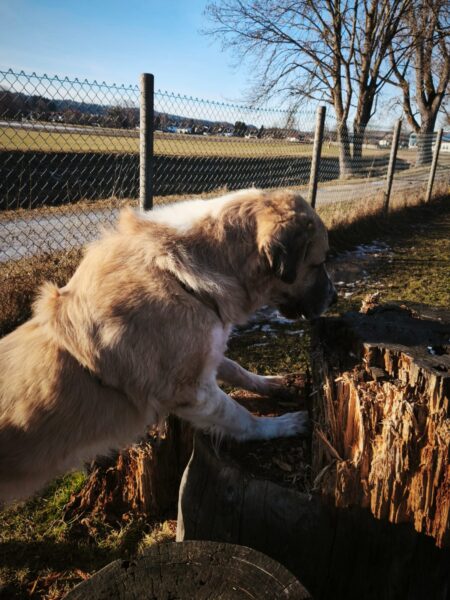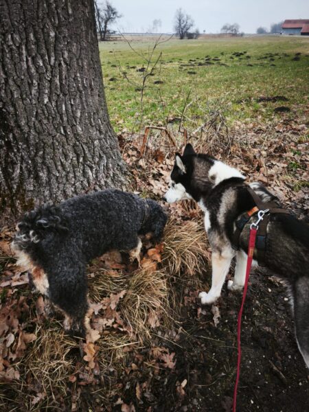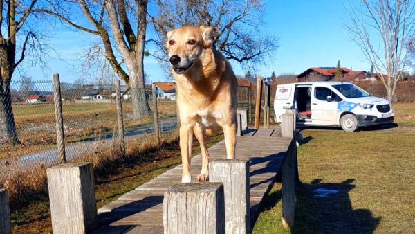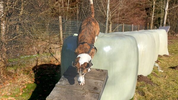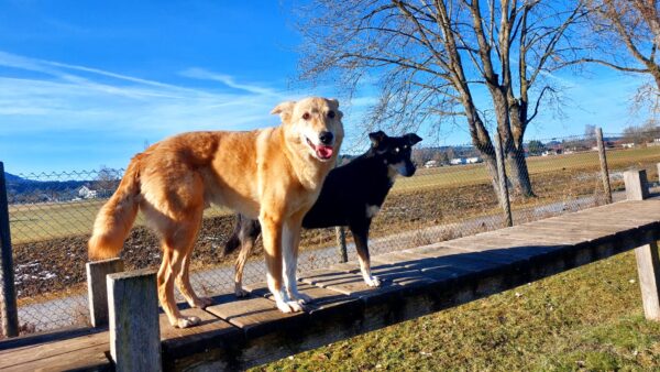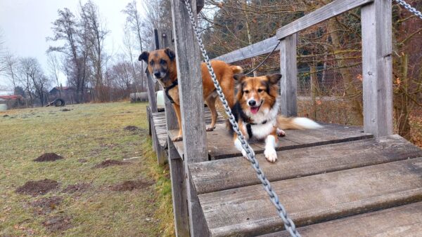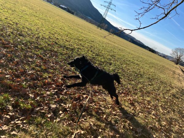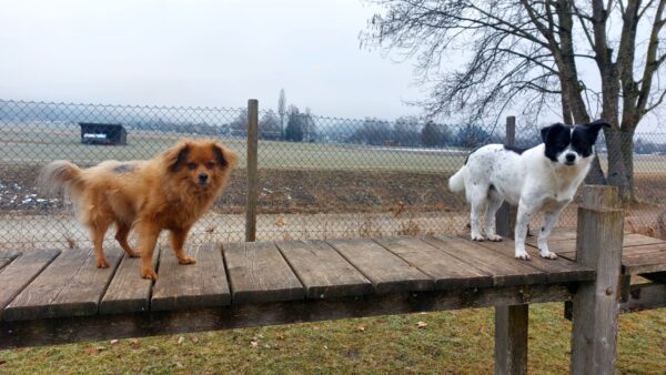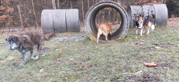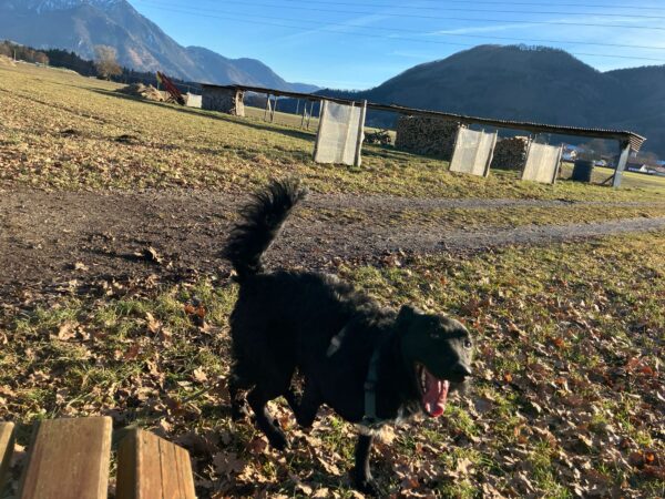 Conny war mit Flora, Fio und Grisu auf dem Hundeplatz, wo die drei eine Mordsgaudi hatten. Sie flitzten über die Fläche, sammelten Leckerchen ein, die Conny für sie ausgelegt hatte und kletterten über die Geräte. Ein paar Mal sind sie mit Radlern am Zaun auf und ab gesaust, was das Zeug hielt und Fio hat damit begonnen, die Krähen herumzuscheuchen, die sich ein Spiel daraus machten, immer wieder in geringer Entfernung von ihm zu landen, so dass er wieder los sauste. Es war ein schöner Ausflug für alle! 🙂