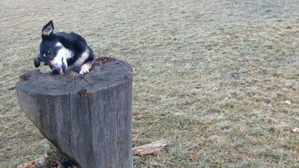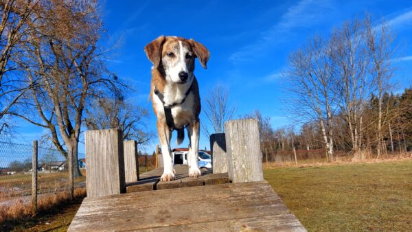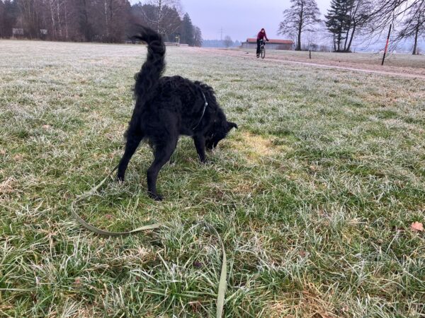 Bereits im Dunkeln fuhr Conny mit Lena zum Hundeplatz, wo die fröhlich kreuz und quer über das Gelände fegte und dann die Geräte ablief, wo Conny Leckerchen für sie versteckt hatte. Teilweise rannte Conny mit ihr mit, aber lange hielt sie das natürlich nicht durch. Sobald Lena das bemerkte, drehte sie um und holte Conny wieder ab. Sooo niedlich. 🙂