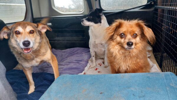 Conny war derweil mit Nicky und Laluna auf dem Hundeplatz. Dani versuchte mit viiiiel Überrredungskunst und Geduld, Percy ins Auto einsteigen zu lassen, aber er wollte nicht. So fuhren Nicky und Laluna allein mit Conny. Oben angekommen sprangen sie fröhlich aus dem Auto und flitzten herum, schnüffelten auf den Spuren der anderen Hunde, die vor ihnen hier waren, sammelten Leckerchen bei der Gerätearbeit ein und freuten sich über den Ausflug. 🙂 Zurück im TierHeim begrüßte Percy seine Mädels überschwänglich und suchte mit ihnen gemeinsam im Hof nach Leckerchen, die Conny und Dani für die drei auslegt hatten. 🙂