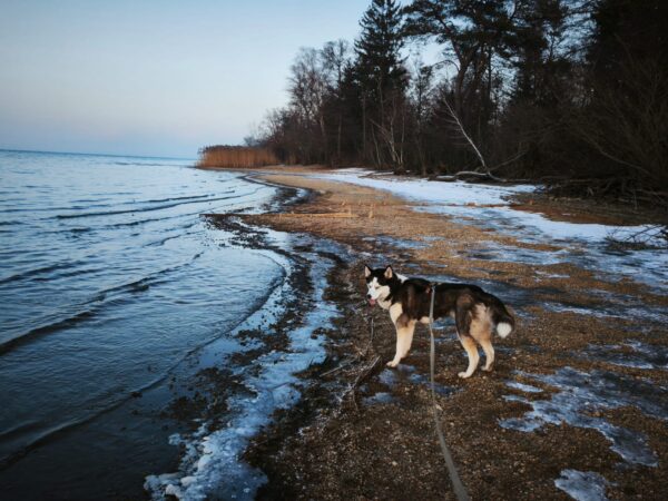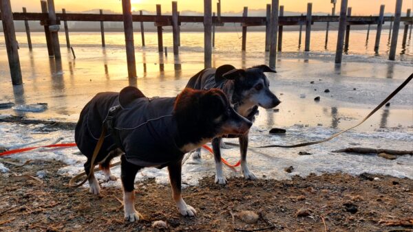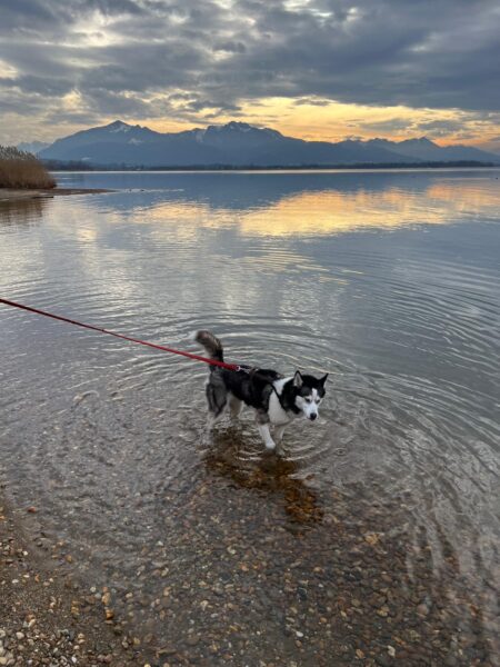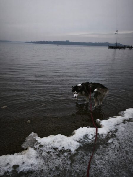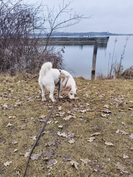Jeanne und Lucky 2.0 sind vormittags in Richtung Übersee und dann bis zur Schranke der JVA gelaufen. Lucky war neugierig auf alles, was am und um das Wasser stattfand und hat auf seiner Spurensuche viele kleine Exkursionen an der langen Leine unternommen. 🙂