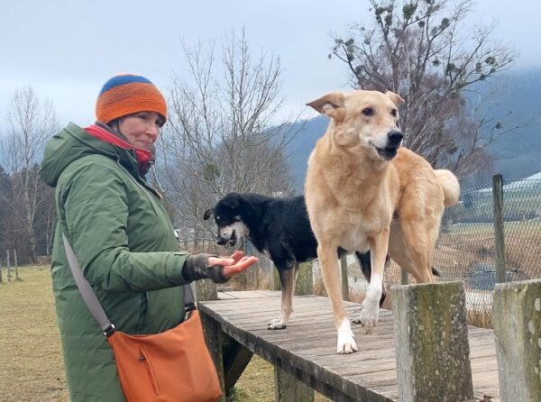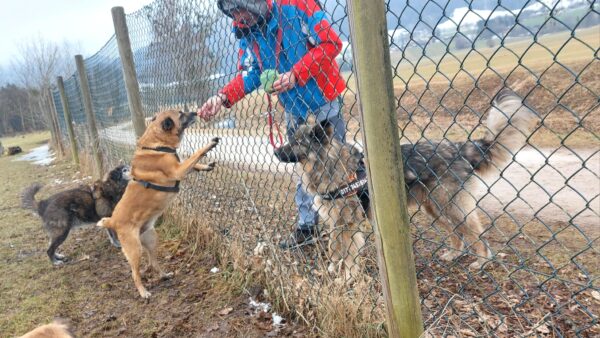 Conny fuhr mittags mit Lena, Angel und Bonnie zum Hundeplatz. Die Überraschung war groß, als das Tor geöffnet wurde, denn Karin ging gerade spazieren, sah das TierHeimauto und machte schon mal auf. Nachdem Conny und die Hunde ausstiegen, gab es eine fröhliche Begrüßung und alle hatten eine schöne gemeinsame Zeit. 🙂