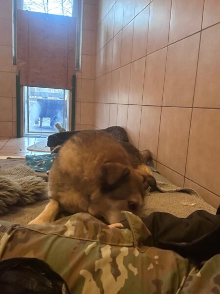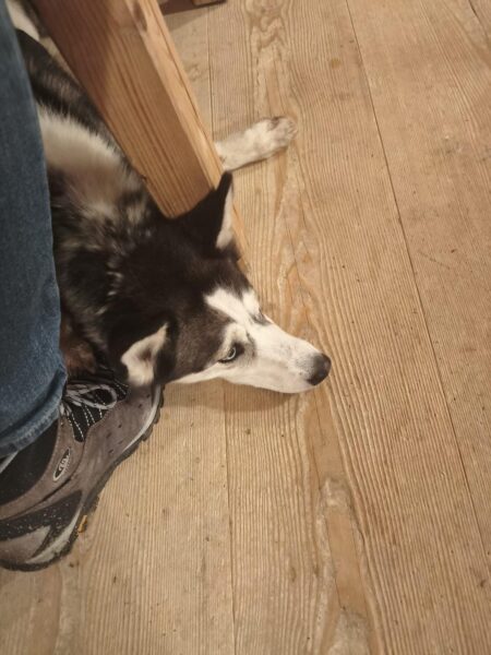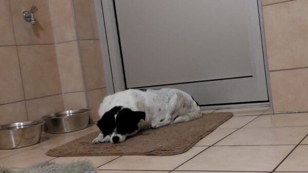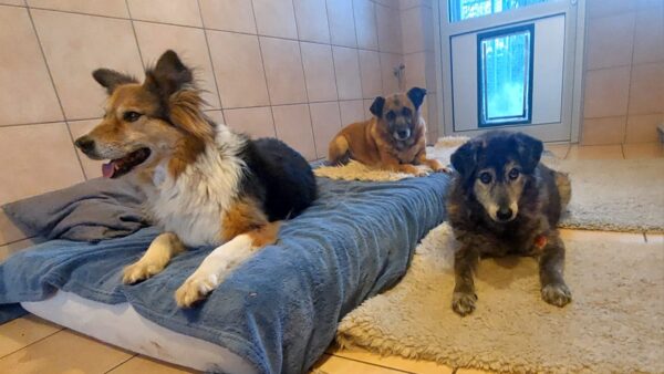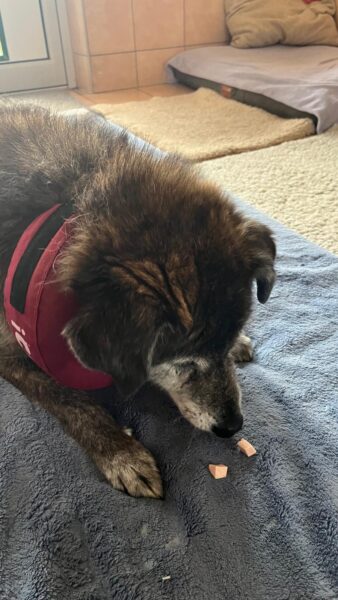 Karin besuchte Flora und Fio in ihrem Zimmer, wo sie stürmisch begrüßt wurde. Beide Hunde beschäftigten sich begeistert mit den Intelligenzspielen, die Karin mitgebracht hatte und Fio untersuchte auch genauestens den Schnüffelteppich, während Flora mit Karin Geschirrtraining machte. 😊 Mit Entspannungsmusik haben sie den Besuch ausklingen lassen. Fio legte sich draußen in sein Bett und Flora auf eine Decke im Zimmer, wie niedlich! 💤💤💤✨
