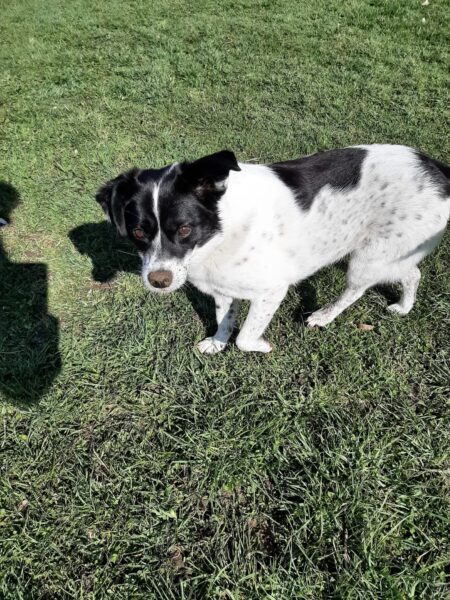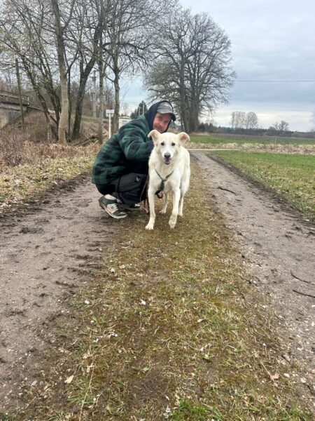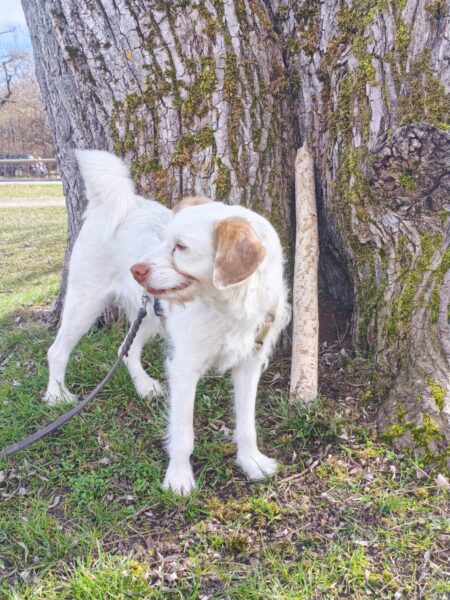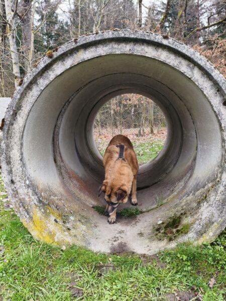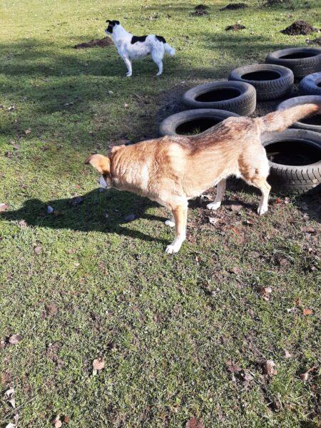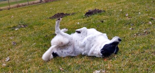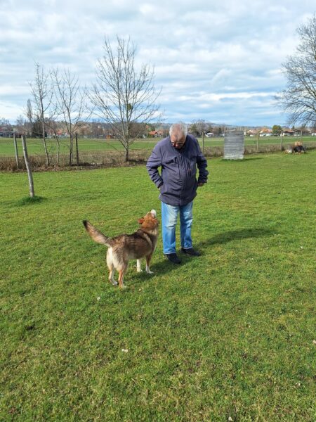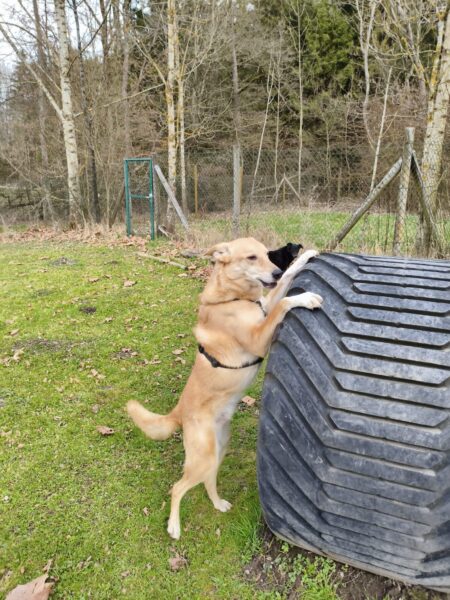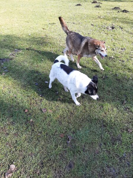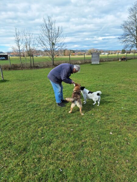 Als Jörn zu Lucky 2.0 ins Zimmer kam, freute der sich schon wie verrückt und begrüßte Jörn stürmisch. Die beiden waren auf den Wiesen rund ums TierHeim unterwegs, Lucky schnüffelte viel, wälzte sich übermütig im Gras und freute sich über ausgelegte Leckerliesuchen, die er ruck-zuck einsammelte. 🙂