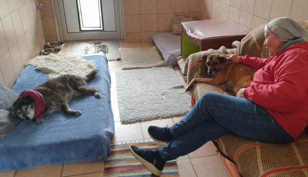 Danach besuchte Conny Rosalie, Lucky und Balto, die sich auch sehr über die Zeit mit ihr freuten. Lucky wollte immerzu gestreichelt werden und pfötelte ebenfalls, wenn sie aufhörte und auch Rosalie genoss ein paar Streicheleinheiten. Balto legte sich dicht dazu und als Conny den dreien aus dem Tagebuch vorlaß, hörten auch sie entspannt zu und dösten schließlich auf ihren Kissen ein. Sooo schön! 🙂