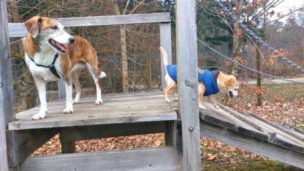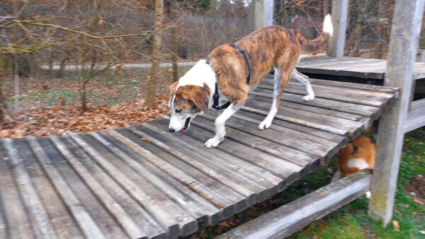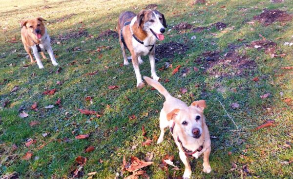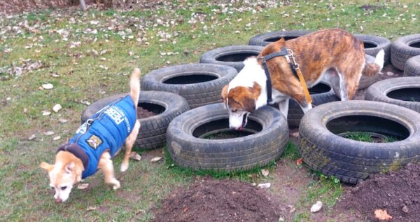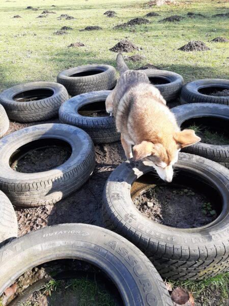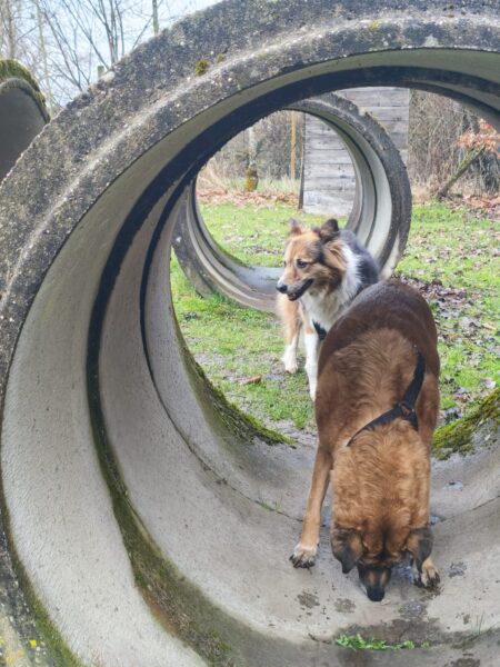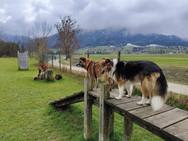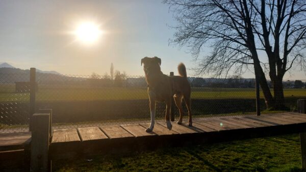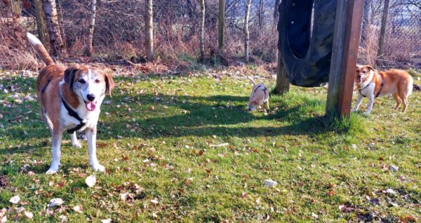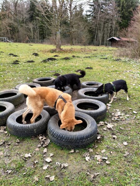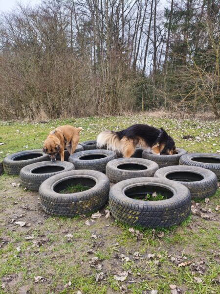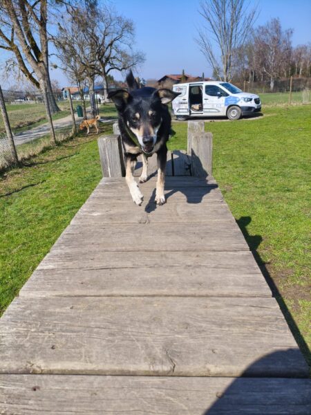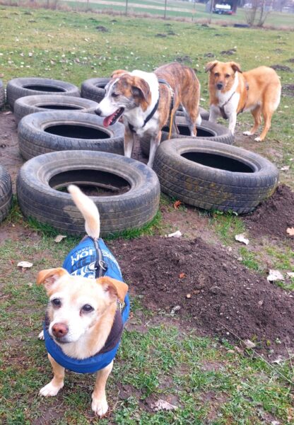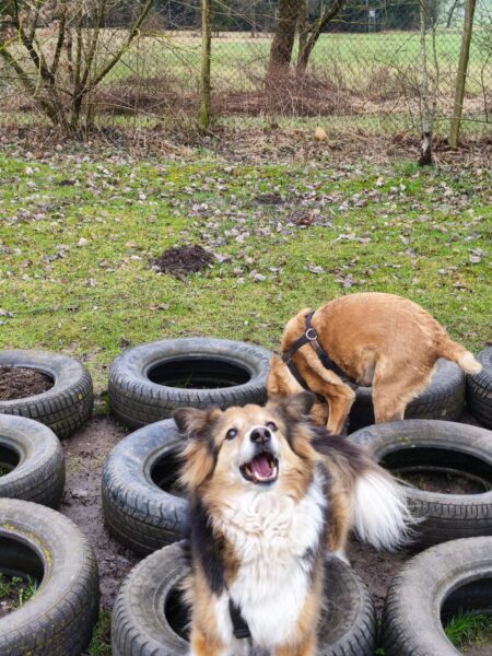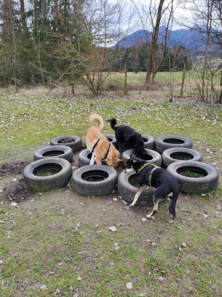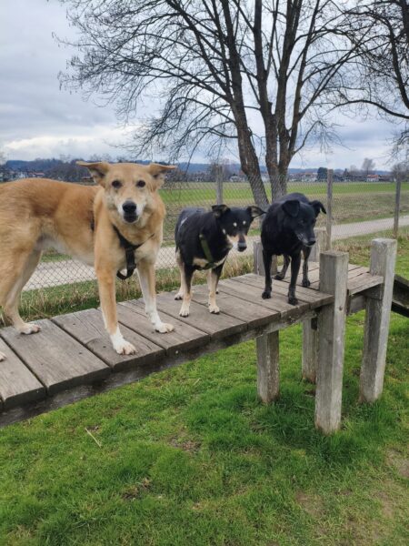 Mit Lena, Angel und Bonnie fuhr Conny zum Hundeplatz. Das Trio hatte eine Mordsgaudi, die Hunde fetzten über die Fläche, wälzten sich im Gras und liefen über die Geräte, wofür es Leckerchen gab. Als ich mit einer Kundin und mehreren Hunden vorbei kam, gab Lena nur ein kurzes Wuffen von sich, ansonsten waren alle drei ruhig und konzentrierten sich auf Conny, die sie dafür reichlich belohnte. Es war ein schöner Ausflug für alle! 🙂 🙂