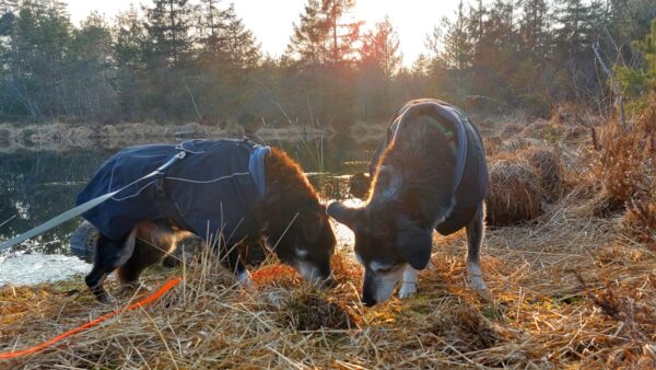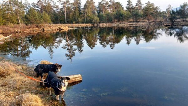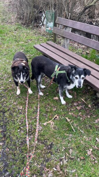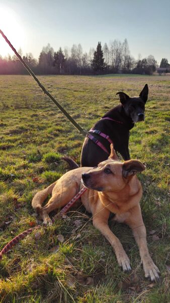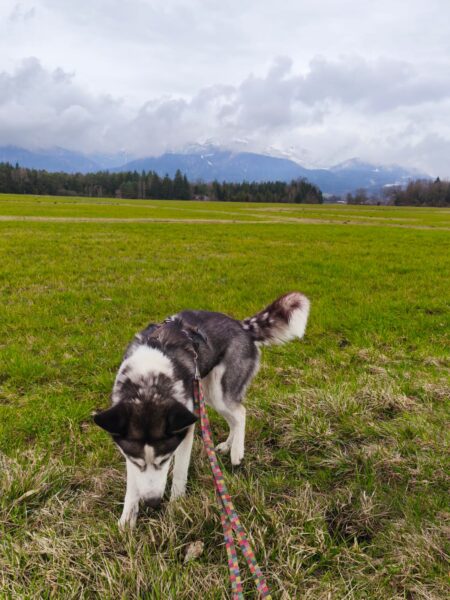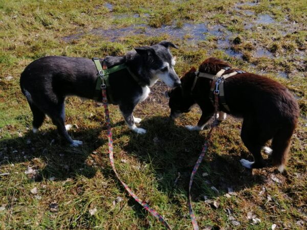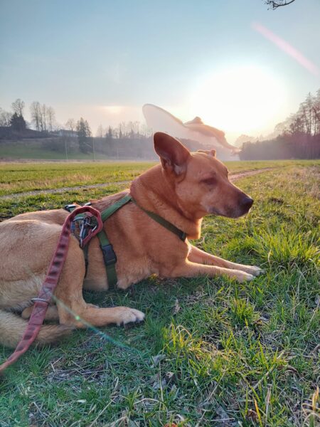 Momo und Aika freuten sich über eine entspannte Abendrunde mit Chris und Karin auf die große Wiese und zum kleinen See dahinter, wo sie noch die letzten Sonnenstrahlen genossen, entspannt durch`s Gras schnüffelten und sich über Leckerchen und Streicheleinheiten freuten. 🙂