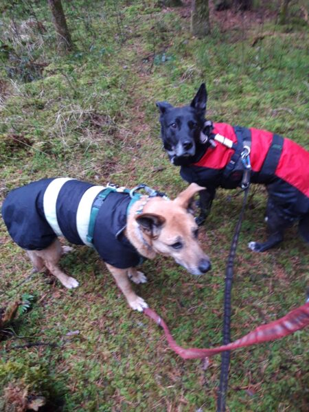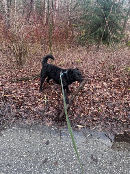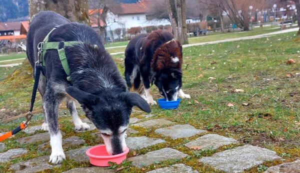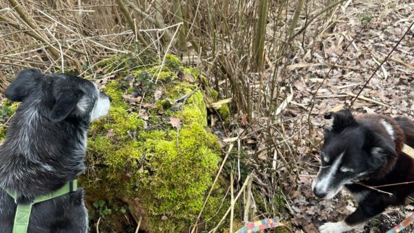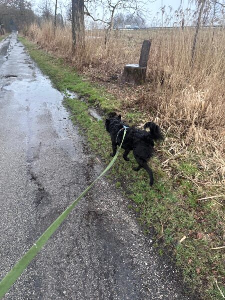 Mit Resi und Franzi ging Elfriede vom Maler Haas aus in Richtung Wertstoffhof und auf die Wiese beim Hochsitz, dann einen Abstecher in den Wald, wo vor allem Franzi unbedingt hin wollte. Auf der großen Wiese beim Förchensee waren auch wieder ein paar gößere Pfützen, in denen Elfriede ein paar Rinderlunge-Leckerlis schwimmen ließ, die die Mädels gleich rausgefischt haben. 🙂