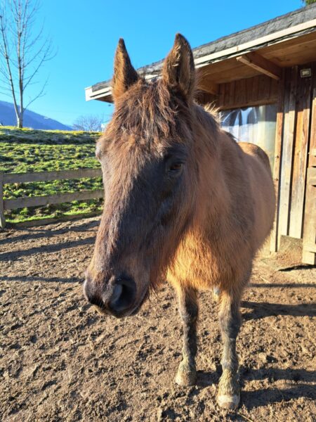 Abends war Lukas im Stall, der von den Jungs freundlich wiehernd begrüßt wurde. Während sie ihr Müsli fraßen, legte er frisches Heu nach, kontrollierte die Tränke und mistete aus. Dann kuschelte er noch eine Weile mit Gowinda und Wallace, bevor er wieder fuhr. 🙂