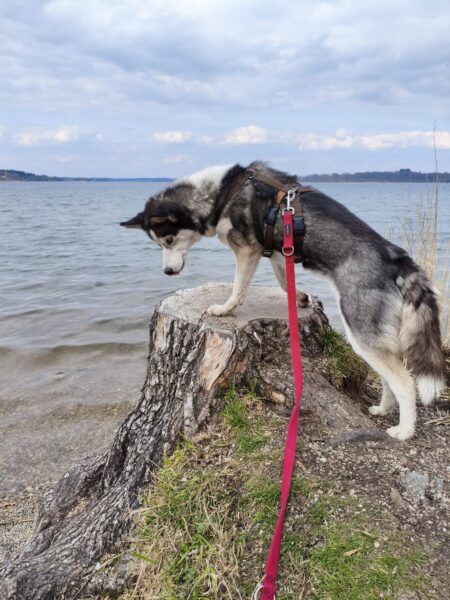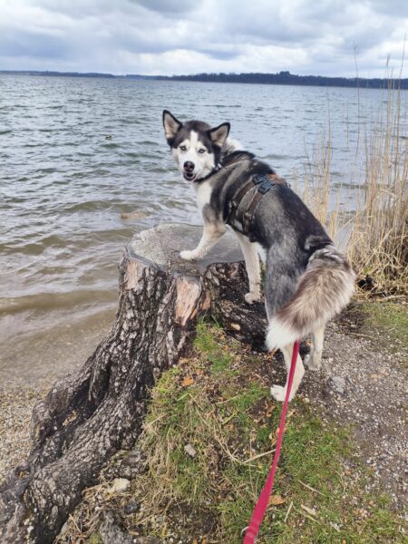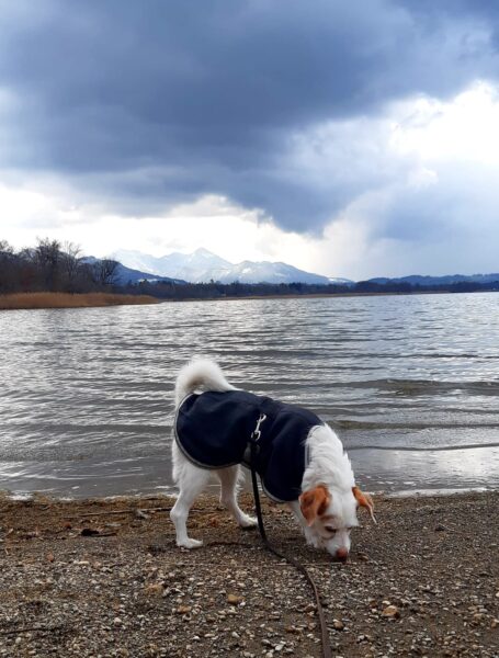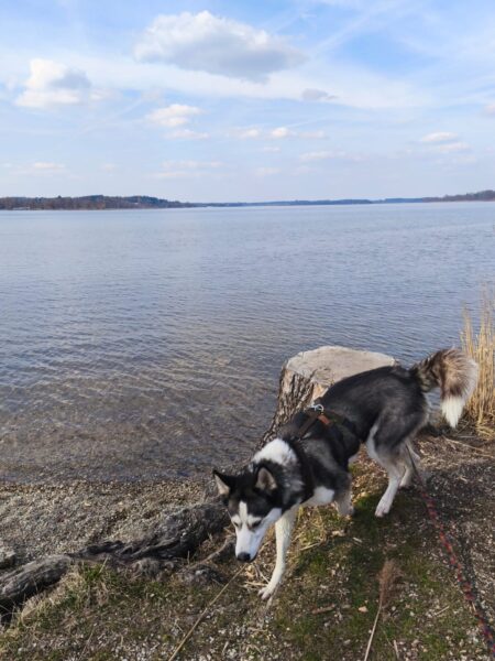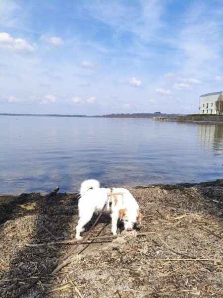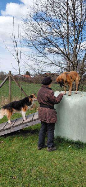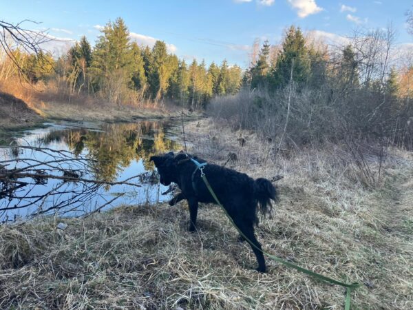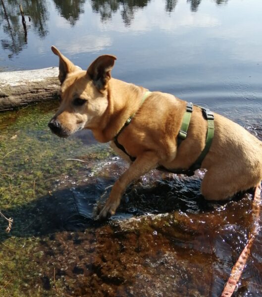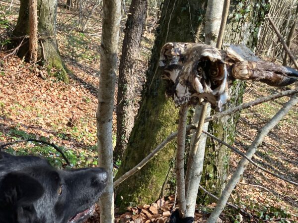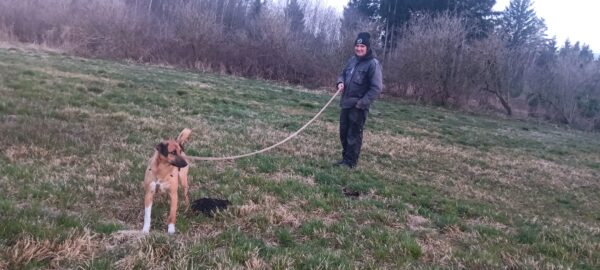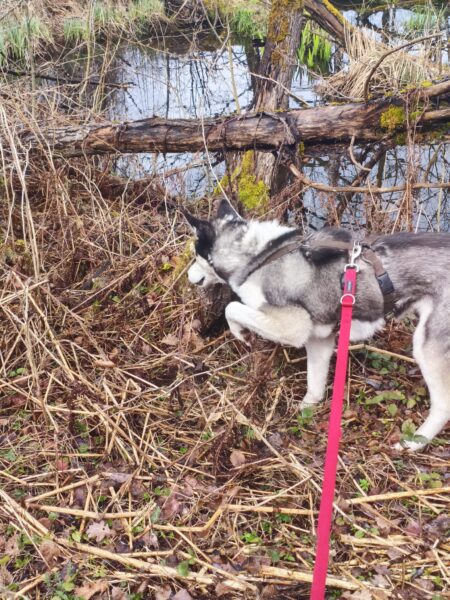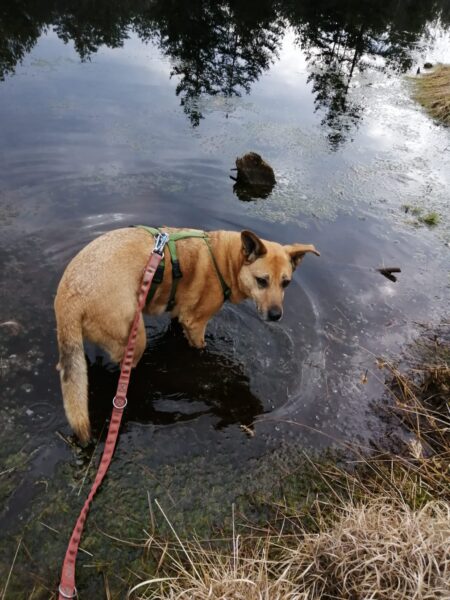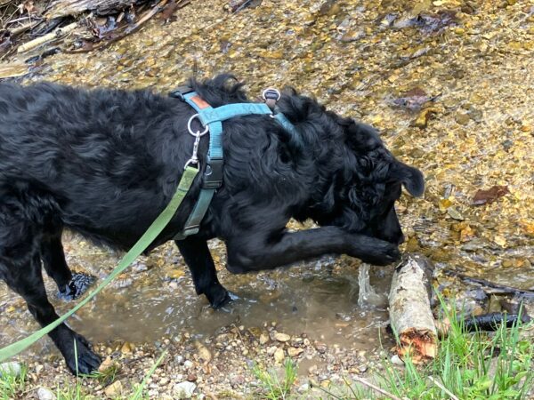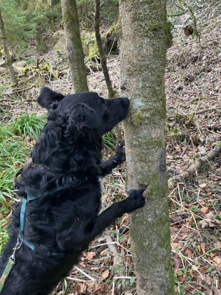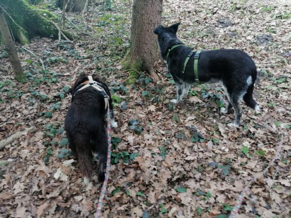 Jeanne war mit Lucky 2.0 im Wald bei Hoherting, wo es reichlich Spuren und Tiergeräusche gab, weshalb Jeanne imner wieder Suchspiele und Wasserspass einlegte. Das funktioniert inzwischen richtig gut und macht beiden Spaß! 🙂