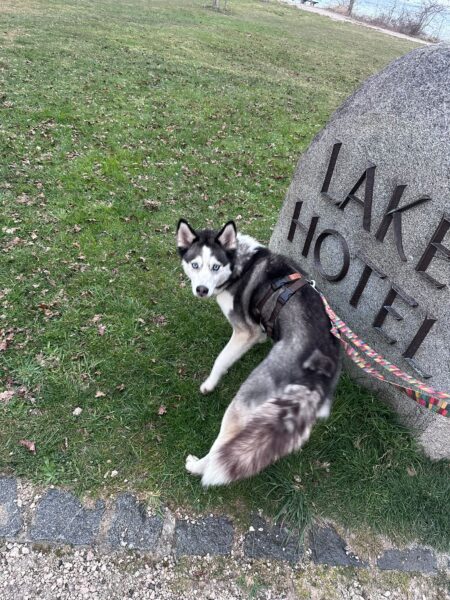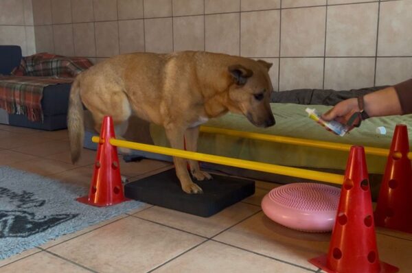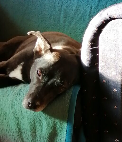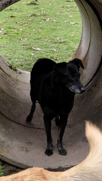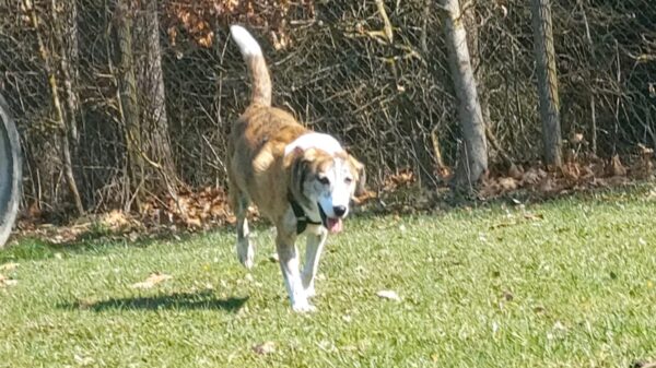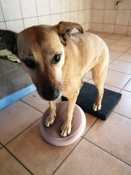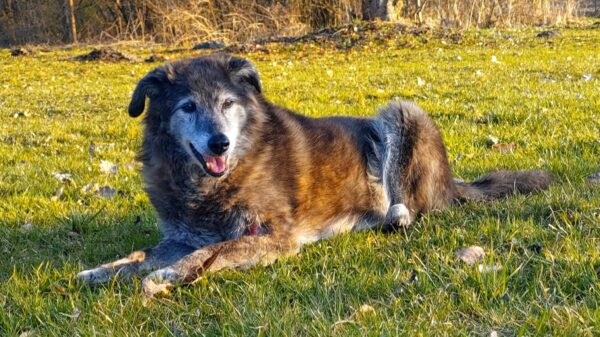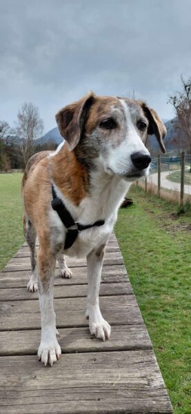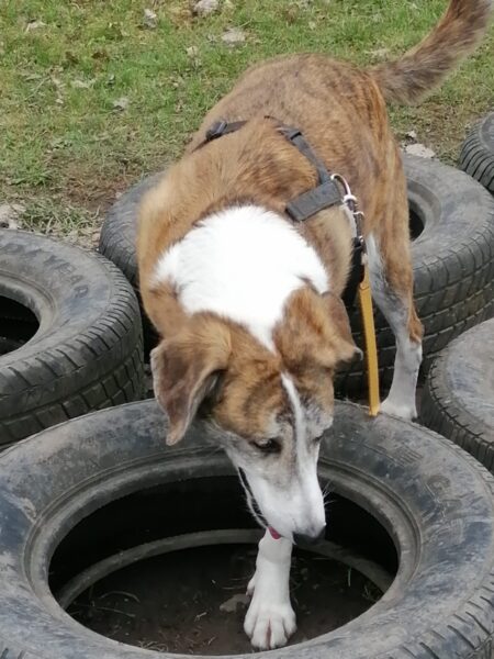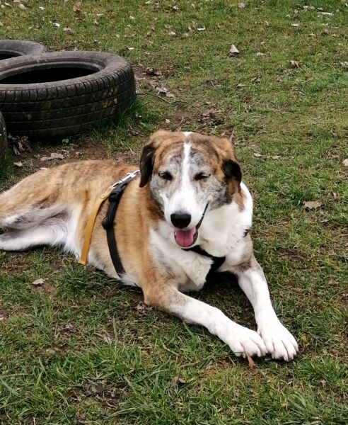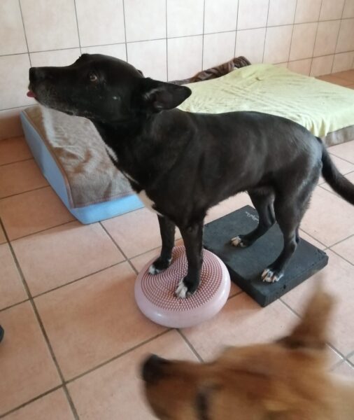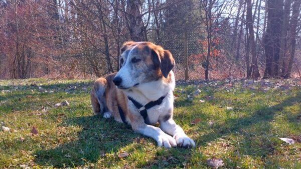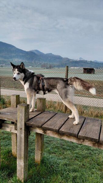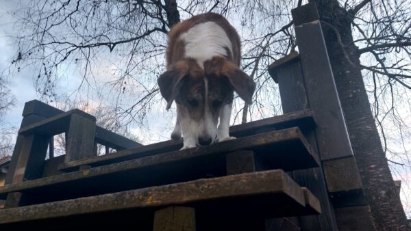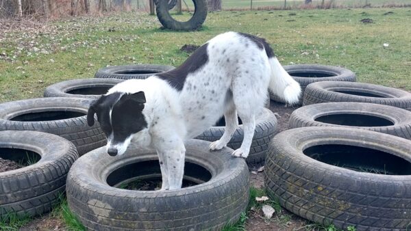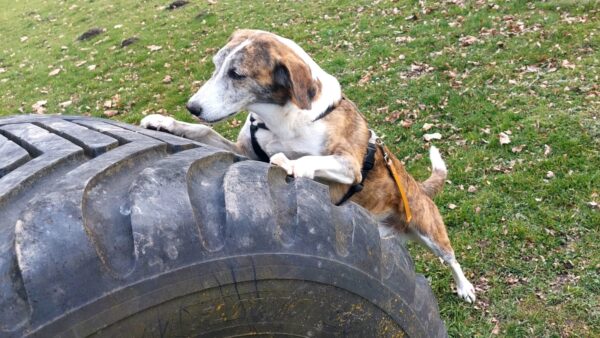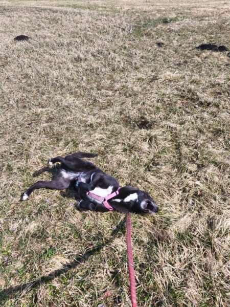 Im Anschluss fuhr Karin mit Lena zum Hundeplatz, die erst ein paar Runden flitzte und dann in aller Ruhe herumschnüffelte. An den Geräten fand sie die Leckerchen, die Karin für sie ausgelegt hatte und freute sich darüber, dann legte sie sich ins Gras und beobachtete die Gegend. 🙂