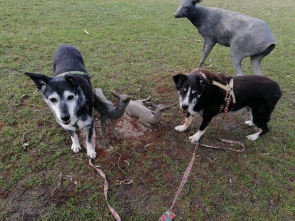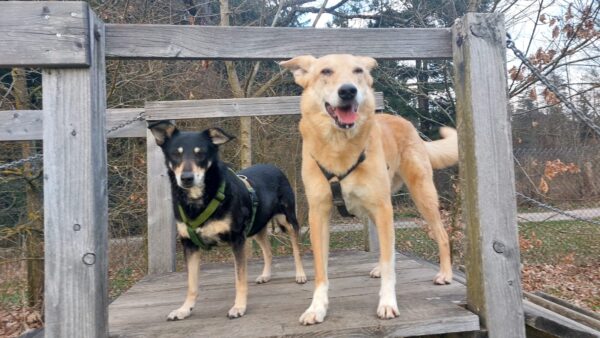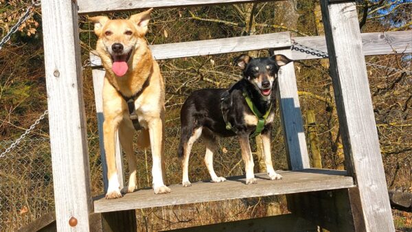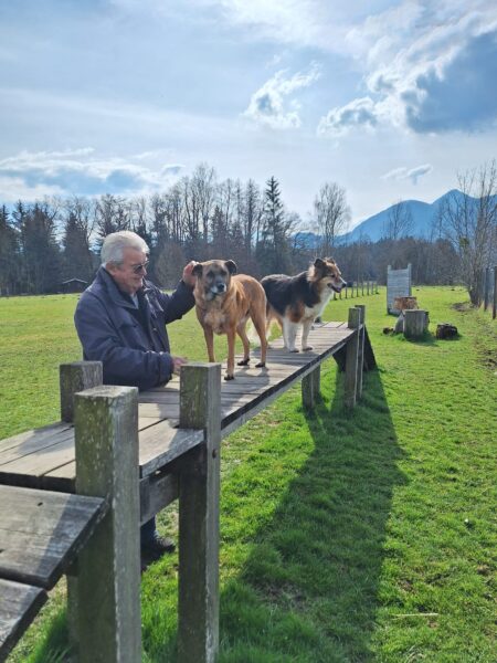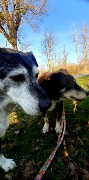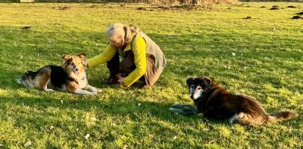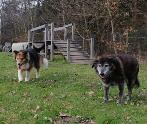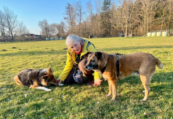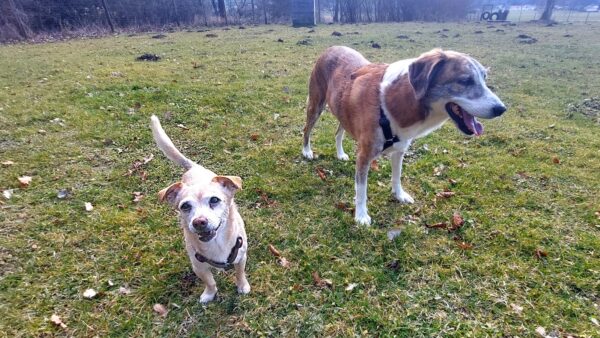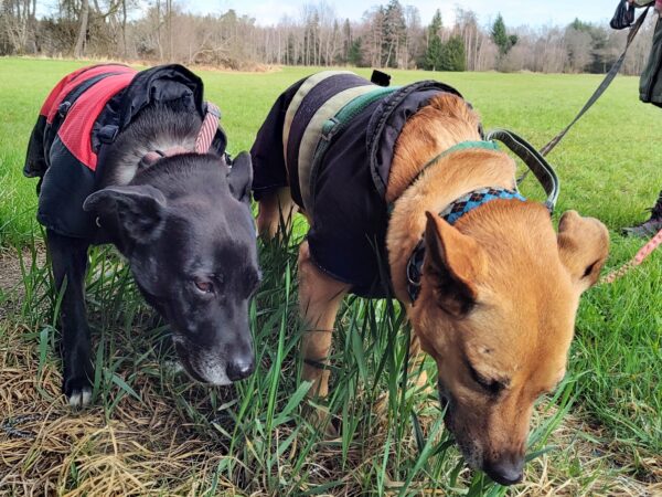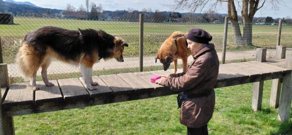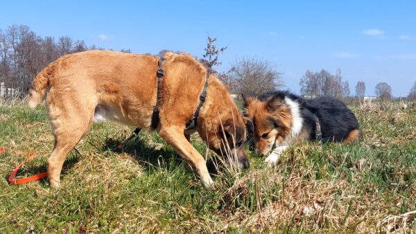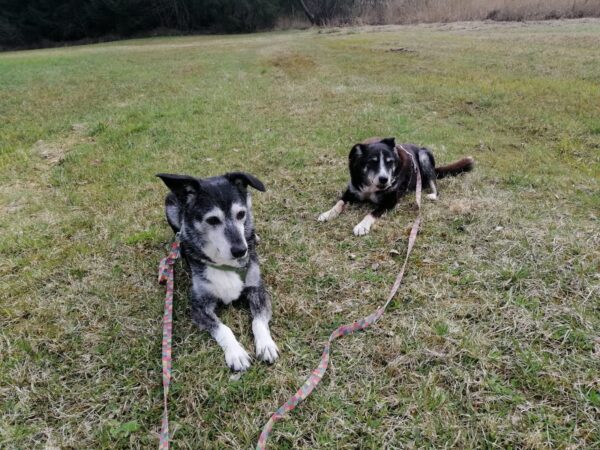Etwas später fuhren Karin und Elfriede mit Rosalie und Lucky zum Hundeplatz. Es war ein schöner Ausflug, 🥰 beide freuten sich über Leckerliesuchen und schöne Kuschelmomente. Zum Abschluss gingen alle wieder außerhalb des Platzes spazieren, wo Rosalie und Lucky auf interessanten Spuren schnüffelten. 🙂