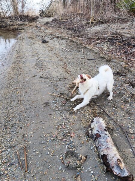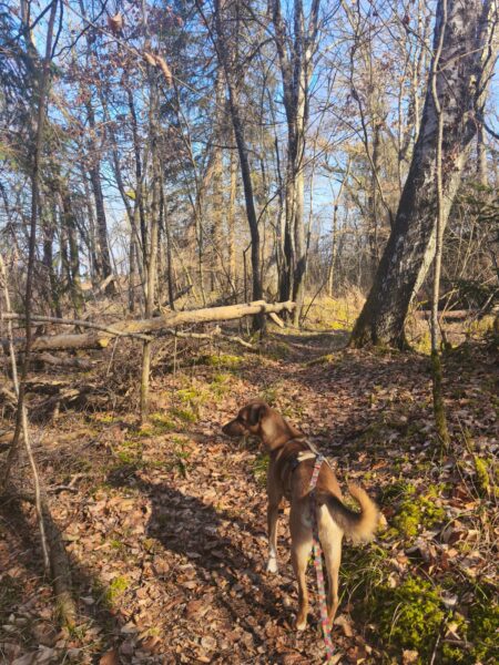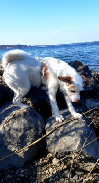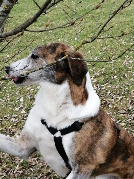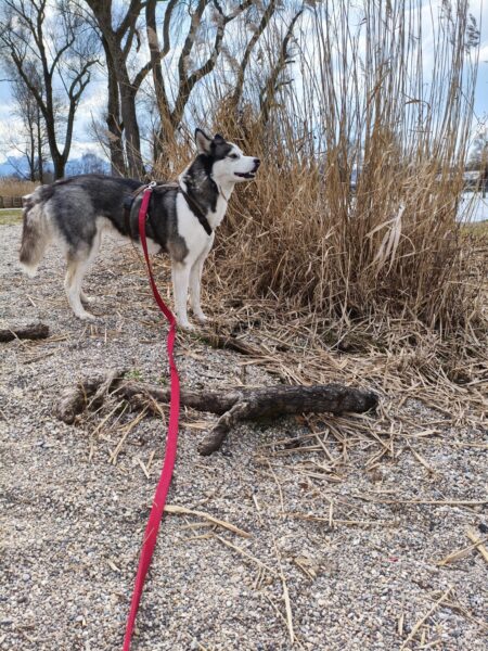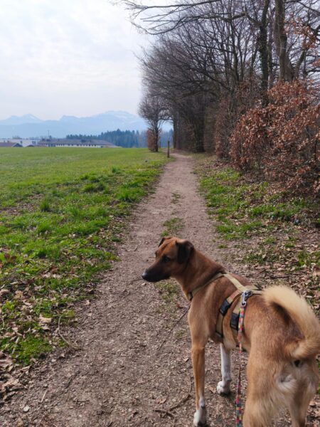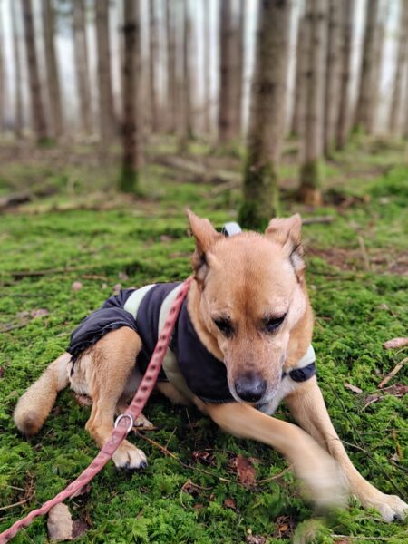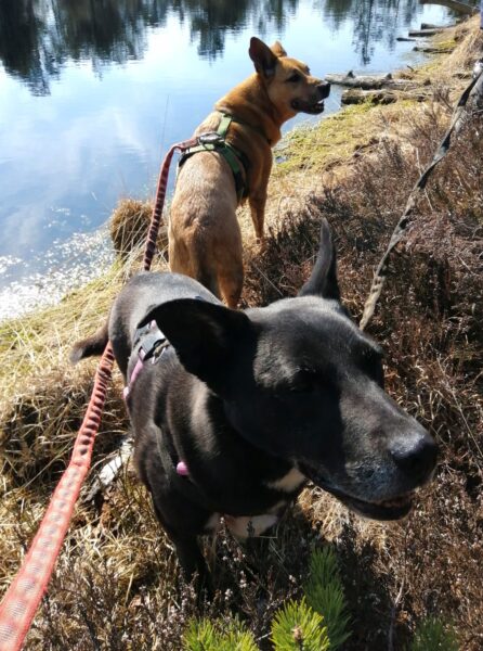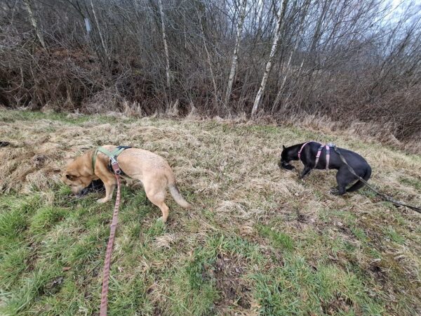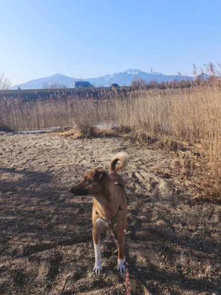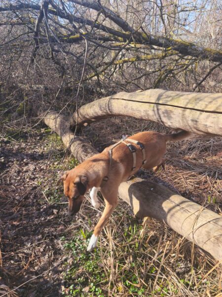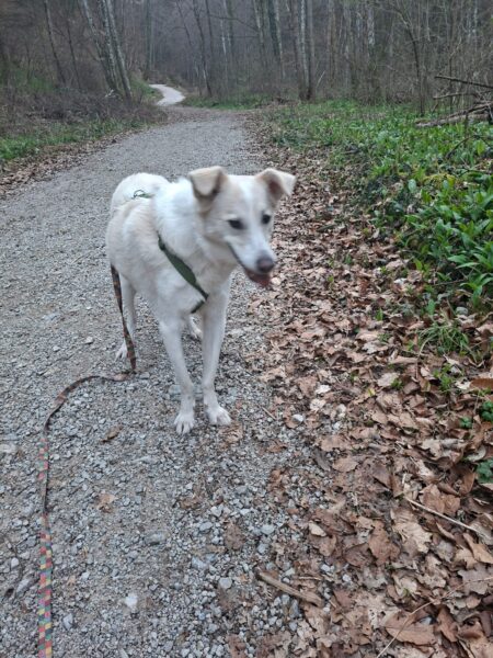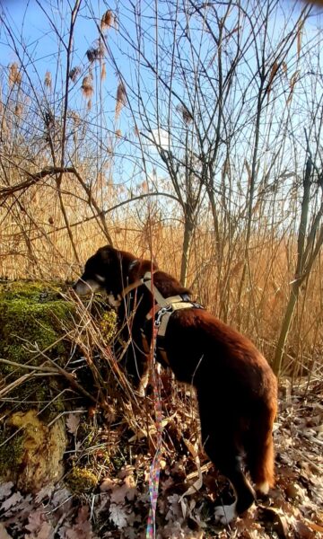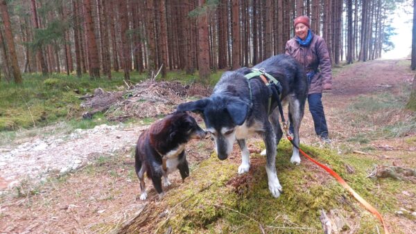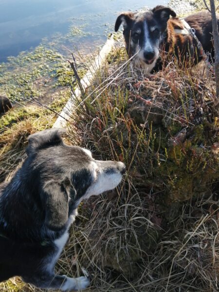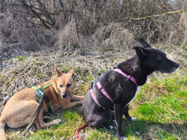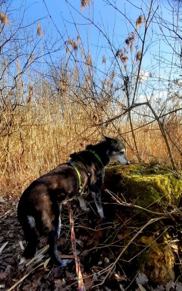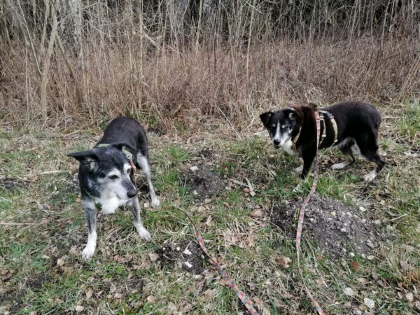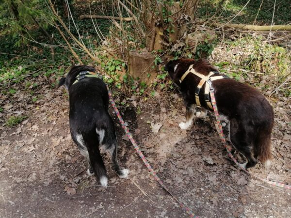 Mit Momo und Aika waren Gunda und Renate an einem neuen Platz hinter dem TierHeim spazieren. Die die vier waren auf verschlungenen Pfaden in romantischer Gegend unterwegs. Die Hunde fanden es sehr spannend und hatten die Nasen die meiste Zeit am Boden. Während einer Pause wurde viel gekuschelt und Momo und Aika durften Leckerchen suchen, die Gunda und Renate für sie ausgelegt hatten. 🥰