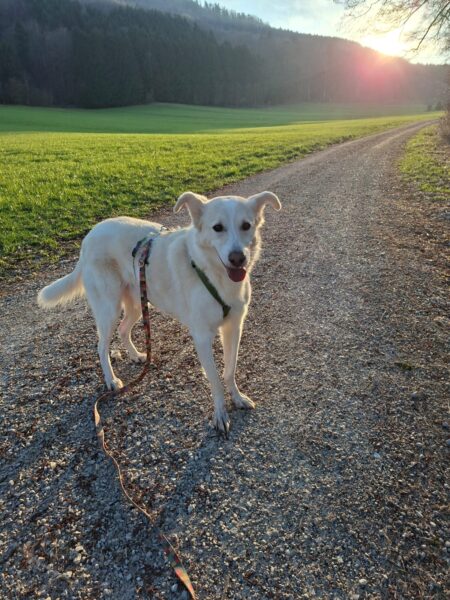 Später, nachdem Santana sich etwas ausgeruht hatte, fuhr Chris mit ihm nach Rottau und machte einen ganz entspannten Spaziergang mit ihm. 😊