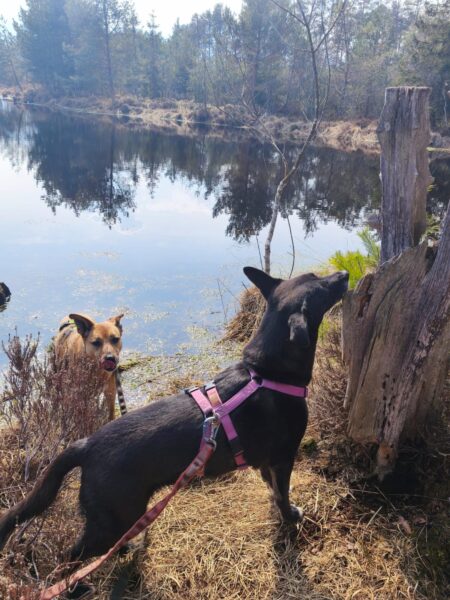 Mit Kirana machte Gunda eine große Runde vom Radweg zum Torfbahnhof und zurück über den Hundeplatz. Die beiden sind sehr zu Kirana`s Freude auch abseits der Wege im Moorgebiet herumgeklettert. 🥰