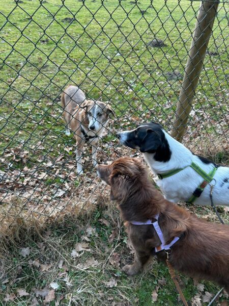 Und auch Lucky 2.0, Santana und Camino kontakteten total freundlich am Zaun. 🥰 Drei so brave Hunde. 😍