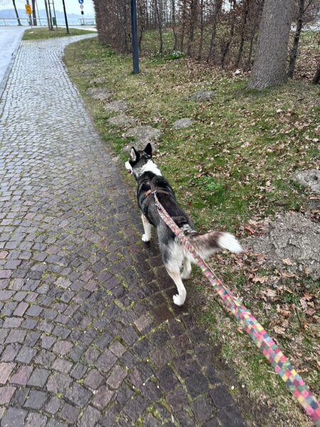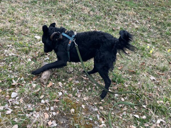 Mit Sam machte Chris am Abend einen Gute-Nacht-Spaziergang auf die große Wiese. Sam ging fröhlich mit, zog gar nicht an der Leine 👍 und genoss die abendliche Auszeit sehr. 🙂