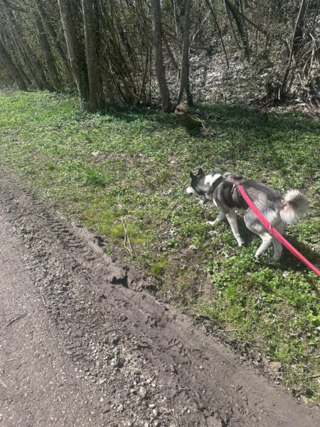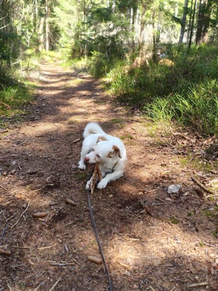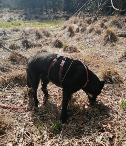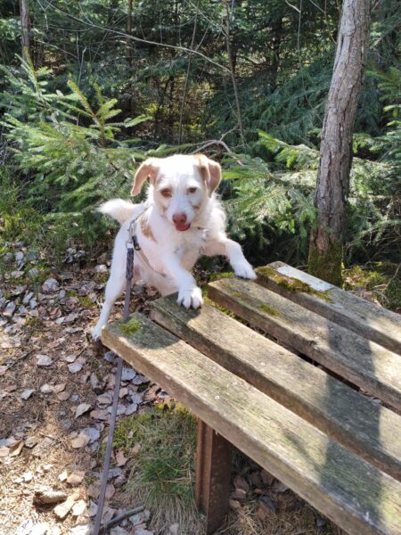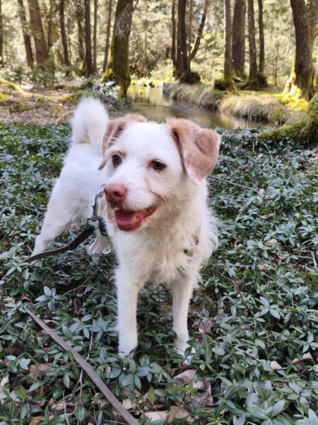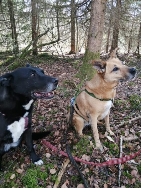 Heinz fuhr mit Elfie nach Rottau, denn auf dem Weg vor dem TierHeim waren bei dem herrlichen Wetter ganze Heerscharen an Radlern und Spaziergängern unterwegs, die sich auf dem Weg drängten, ziemlich unentspannt… Im Wald bei Rottau hingegen hatten die beiden viel Spaß, Elfie schnüffelte eifrig am Wegesrand und erkundete die Umgebung. Zwischendurch fand sie einen Ast, den wirbelte sie übermütig in die Luft und zerbiss ihn, dann sauste sie gut gelaunt weiter, frischte sich im Bach ab und genoss die Kuschelpausen im lichten Schatten. 🙂