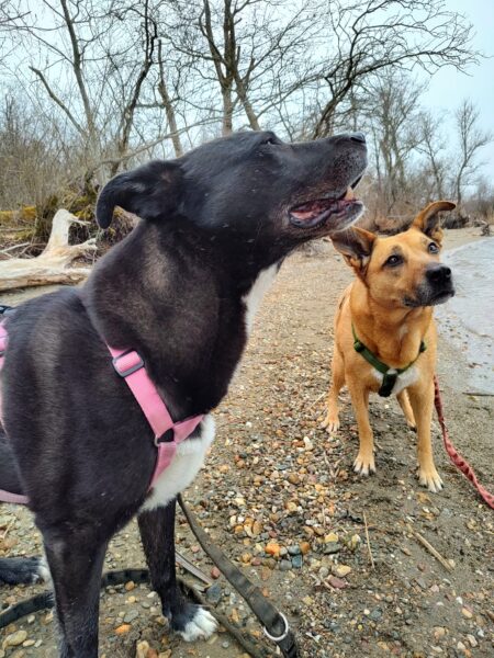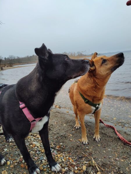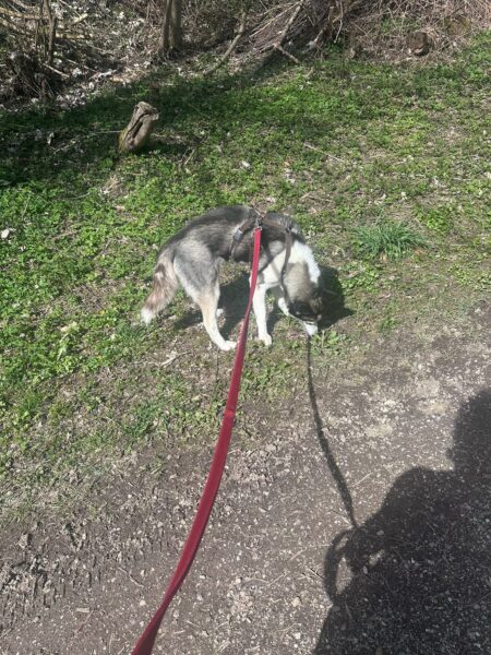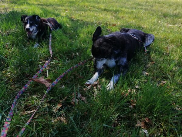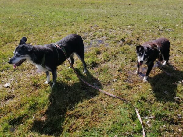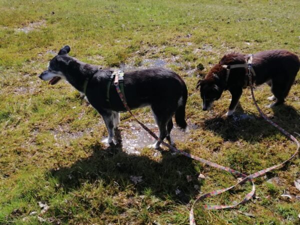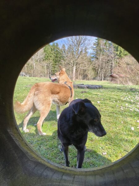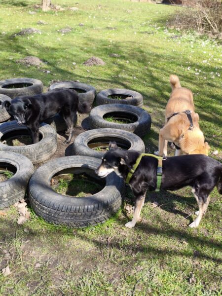 Mit Momo und Aika sind Jutta und Renate auf die große Wiese, die kleine verwilderte Wiese und zum kleinen See dahinter gegangen, wo beide badeten. Danach haben sie in der Sonne sitzend gekuschelt und Leckerchen eingesammelt, die Jutta und Renate für sie versteckt hatten. Nach vielen Abstechern ins Wäldchen waren sie pünktlich zur Futterzeit zurück im TierHeim. 🙂