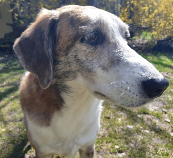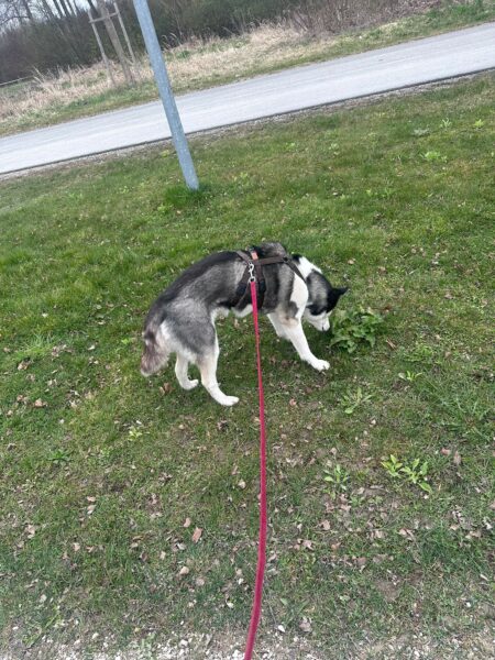 Als Elfriede kam, gingen Lucky, Balto und Rosalie in den Auslauf und begrüßten Elfriede fröhlich. Im Auslauf durften sie die mitgebrachten, mit ein paar Leckerchen gefüllten Papprollen auffetzen und weil Ostern war, gab es auch ein paar Stückchen hartgekochtes Ei. Auch Balto fand das Osterei lecker und fraß es mit Genuss. 🙂