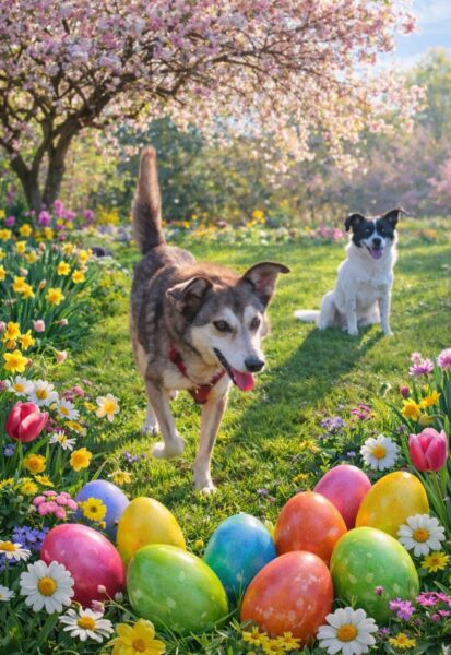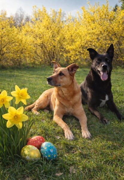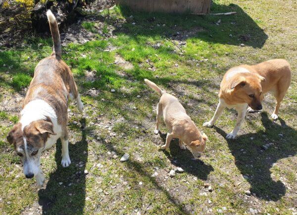Lena, Angel und Bonnie genossen es, ebenso wie alle anderen Hunde, endlich mal wieder in der Sonne dösen zu können. Sie verbrachten viel Zeit im Hof und freuten sich, daß Elfriede auch für sie ein Osterei mitgebracht hatte, das sie begeistert fraßen. 🙂