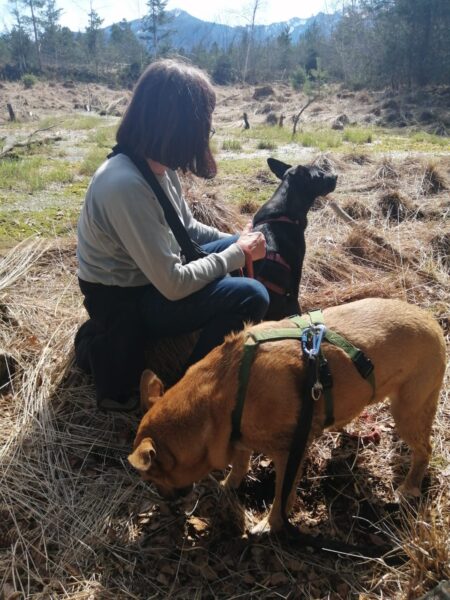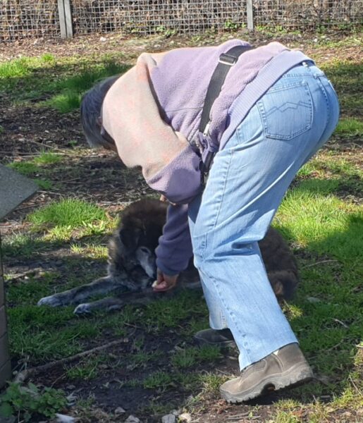 Anna Maria besuchte spätnachmittags Momo und Aika und machte mit ihnen ein paar Physio-Übungen. Danach hat sie noch ausgiebig mit ihnen gekuschelt, wobei Momo und Aika Anna Maria anstrahlten. 🙂