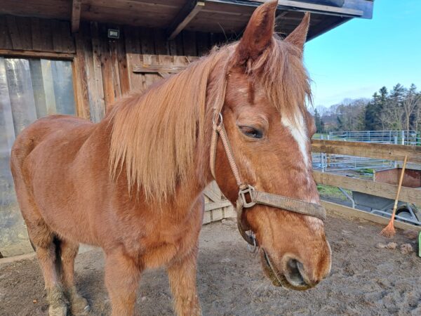 Morgens war Biggi bei den Pferden. Wallace wartete bereits am Stall, während Gowinda noch auf der Weide stand, aber nach ein paar Rufen auch gleich angetrabt kam. Beide bekamen ihr Müsli und frisches Heu – während sie fraßen, erledigte Biggi die üblichen Stallarbeiten. Danach war Huf- und Fellpflege dran und nachdem die erledigt war, gab es noch viele Streicheleinheiten in der Morgensonne. Als Biggi schließlich wieder fuhr, knabberten die beiden zufrieden am Heu. 🙂