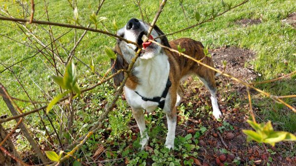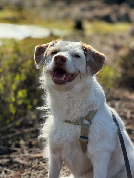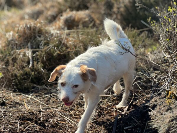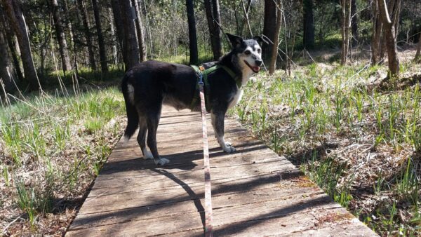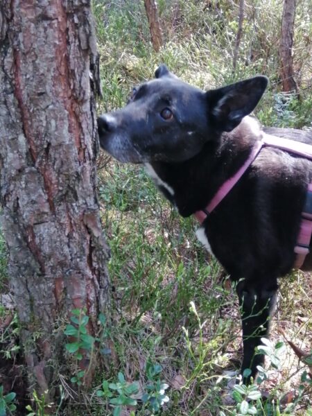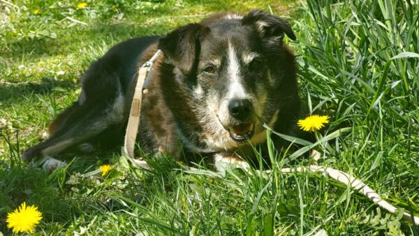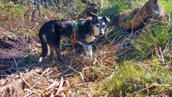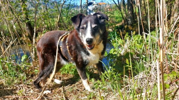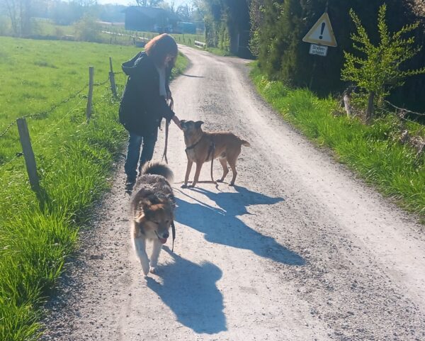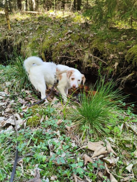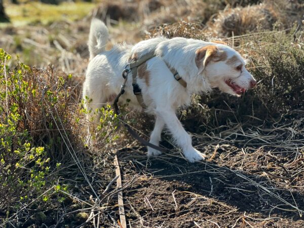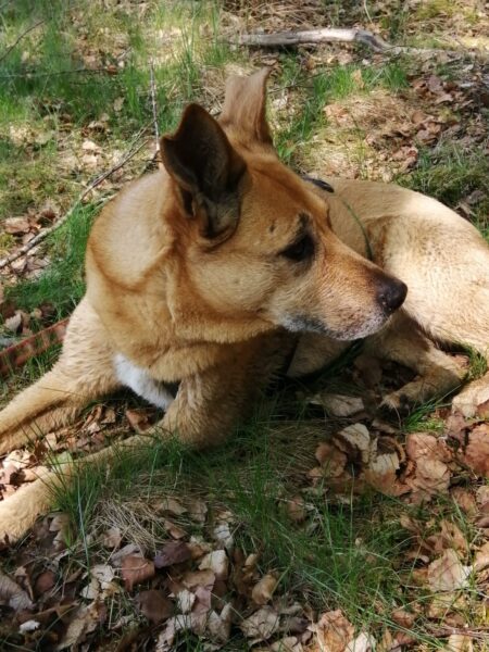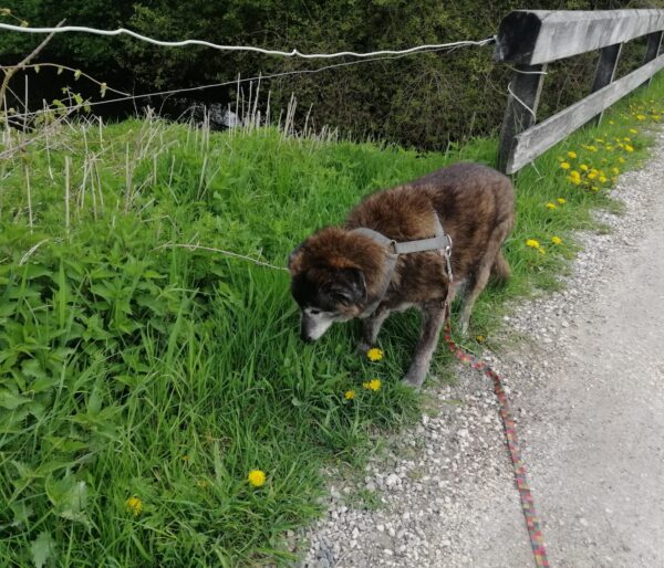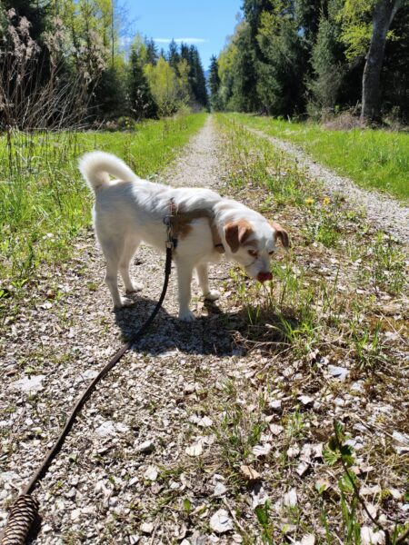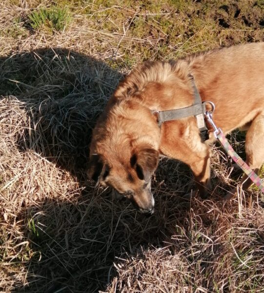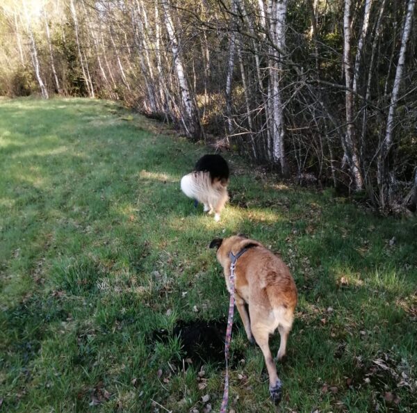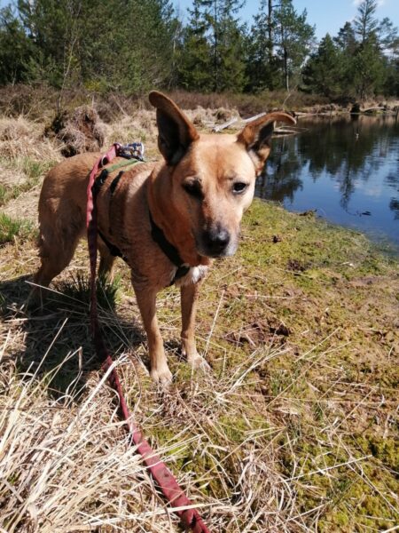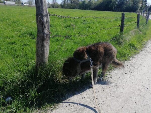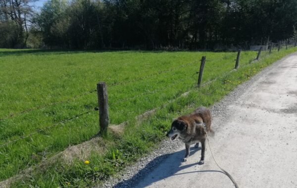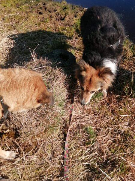 Nadja und Elfie sind über die große Wiese gelaufen und haben eine Moortour gemacht. Dabei ist Elfie über Stock und Stein gesprungen und wollte ganz viel rennen. An einem schönen Platz haben die beiden eine Kuschelpause eingelegt, danach hat sich Elfie einen Stock gesucht und beknabbert, derweil hat Nadja Leckerchen für sie versteckt, die Elfie begeistert eingesammelt hat. Dann haben sich die beiden langsam auf den Rückweg gemacht, aber im Trödeltempo mit viel Zeit zum Schnüffeln für Elfie. Vorbeifahrende Radfahrer haben sie gar nicht gestört und sogar ein einparkendes Auto hat sie nicht aus der Ruhe gebracht. Es war ein schöner Ausflug. 🙂