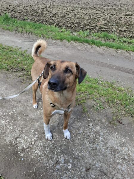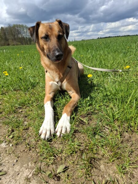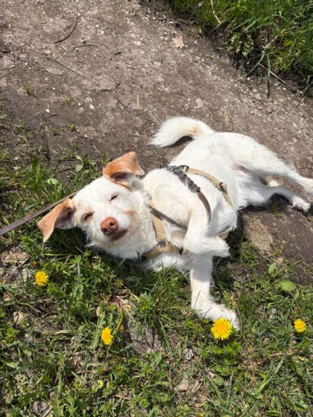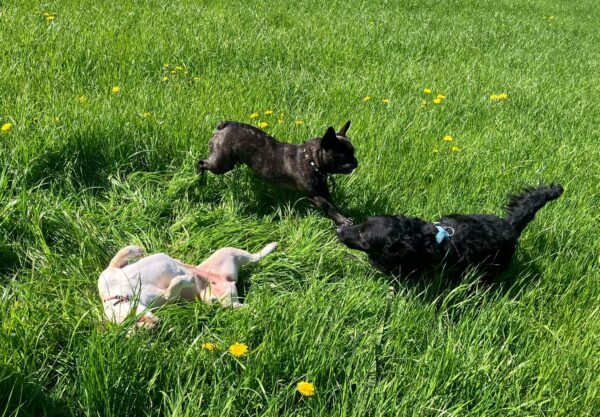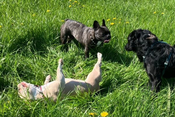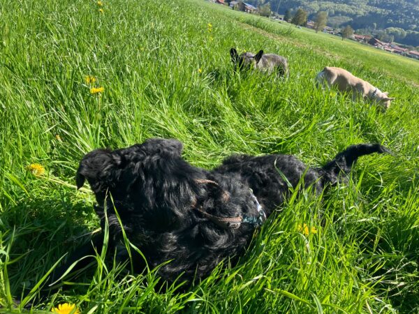 Lucky 2.0 war mit Jeanne auf den Wiesen bei Rottau unterwegs, wo er zwei Bullies getroffen hat, mit denen er super zurecht kam. Er war sehr höflich-zurückhaltend und konnte sie nach Austausch verschiedener Beschwichtigungssiganle sogar zum Spielen motivieren. 🙂
