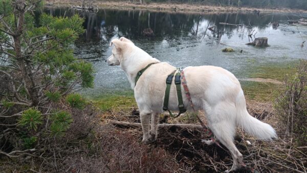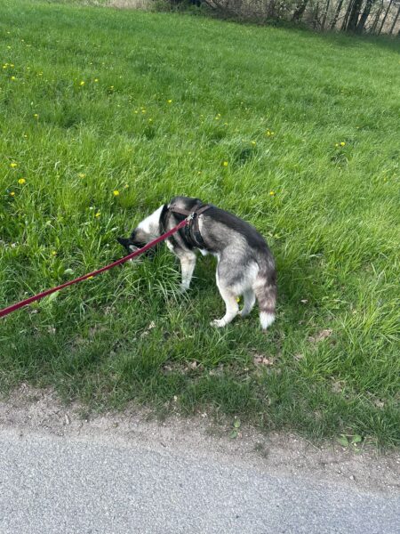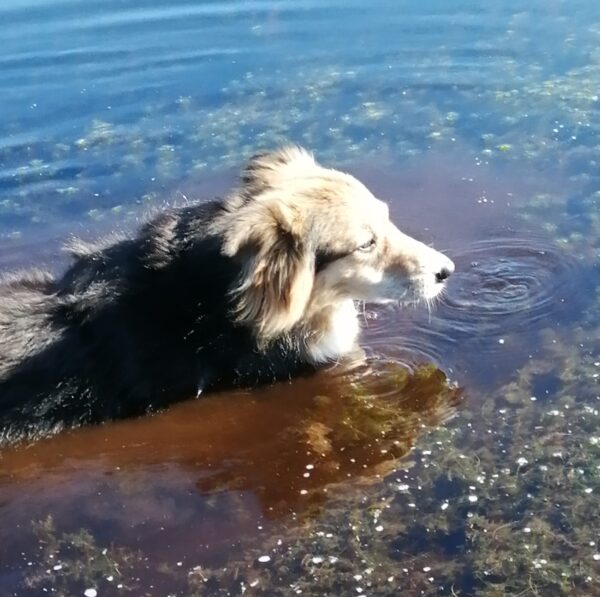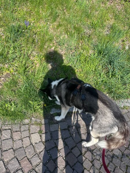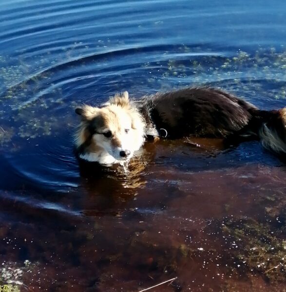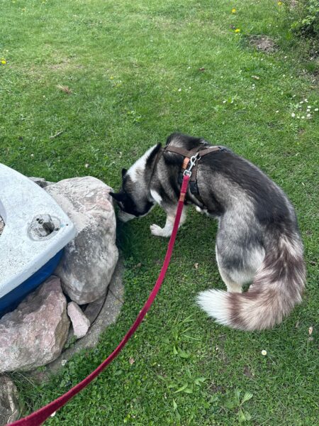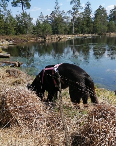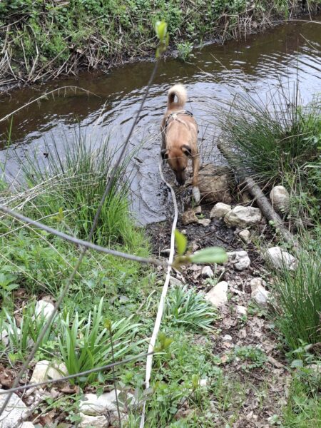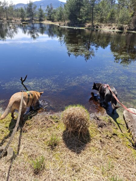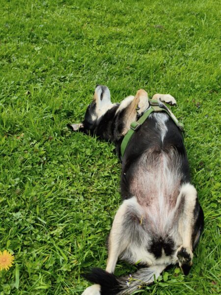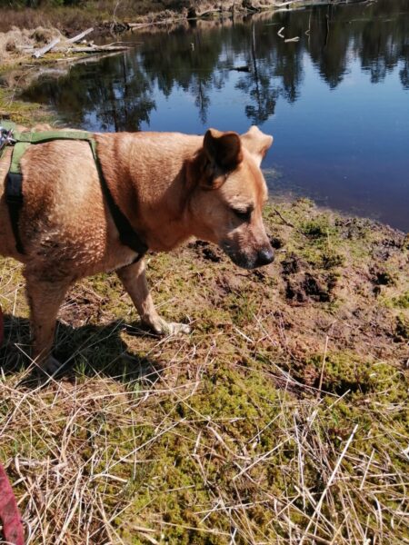 Mit Momo und Aika ging Jutta nacheinander auf die große Wiese. Beide Mädels hatten viel Spaß, Momo hat es ins Moor zu den kleinen Wegen gezogen, wo sie immer wieder eine neue Spur gefunden hat. Zum Baden im kleinen See hatte sie im Gegensatz zu Aika keine Lust. Aika ist eifrig den Spuren Momos gefolgt, hat ausgiebig im Wasser geplantscht und die Sonne genossen. 🙂