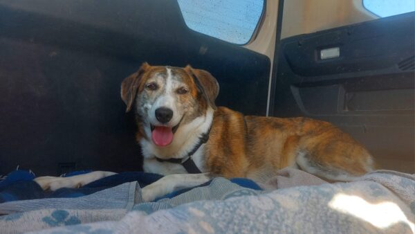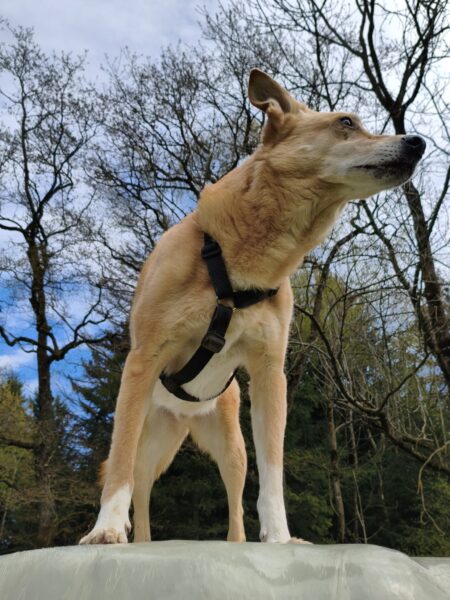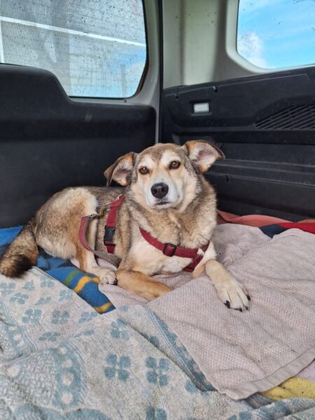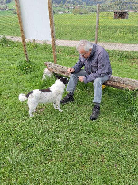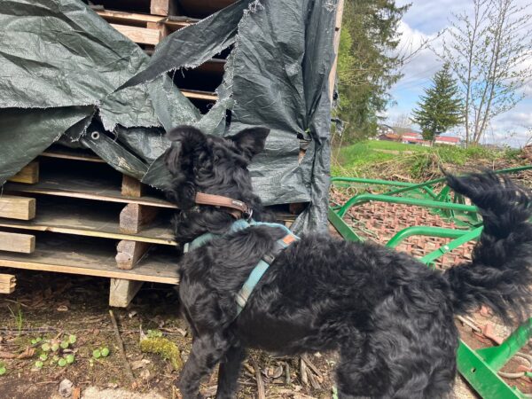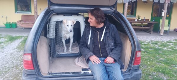 Chris fuhr mit Santana nach Rottau, der während der Autofahrt sehr aufgeregt war wegen der vielen Radfahrer, die unterwegs waren. Leider beruhigte er sich auch beim Spaziergang nur mäßig, weil auch in Rottau viele Radfahrer unterwegs waren. Chris ging deshalb mit ihm in den Wald, aber auch dort wurde die Aufregung nur minimal besser. Daher entschied Chris, zurück zum TierHeim zu fahren, wo er lange mit Santana im Zimmer kuschelte, bis der sich beruhigt hatte. Danach verbrachte Santana noch Zeit mit Chris und Dani im Hof. 🙂 In der Hoffnung, dass Santana in einer Box während der Fahrt besser zur Ruhe kommt, bauten Chris und Dani eine Box in Chris‘ Auto ein, die Santana gleich ausprobierte und Leckerchen dafür bekam. 🙂