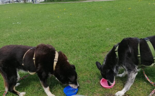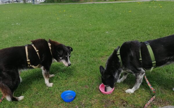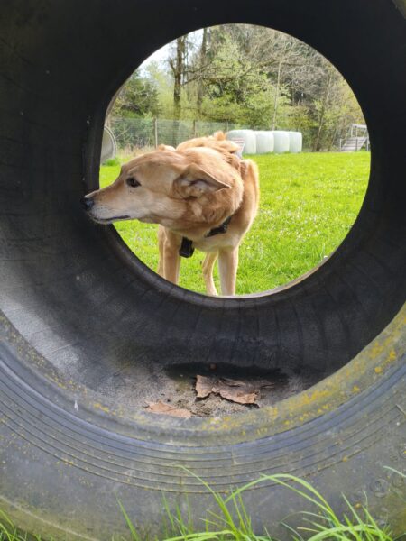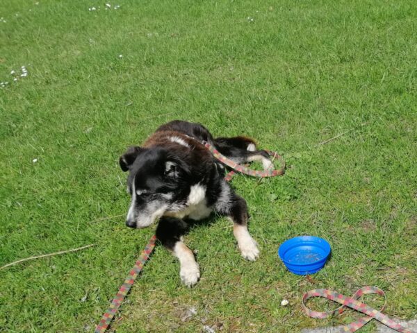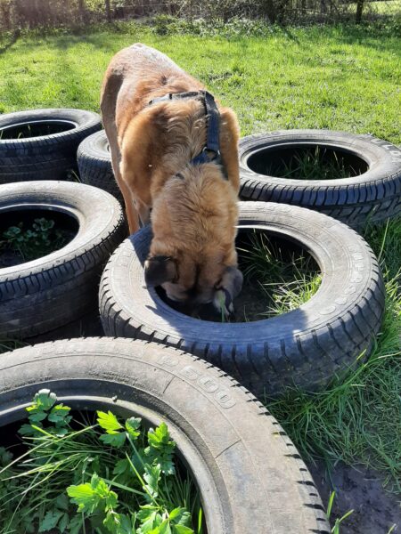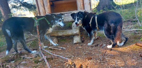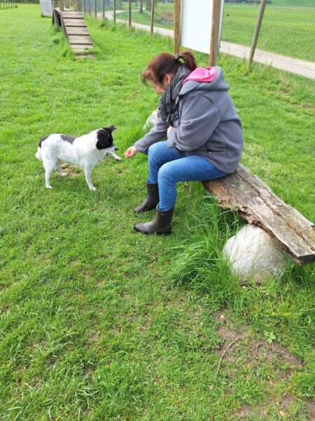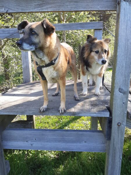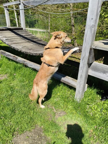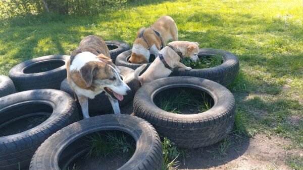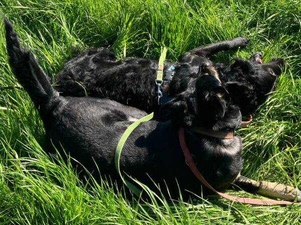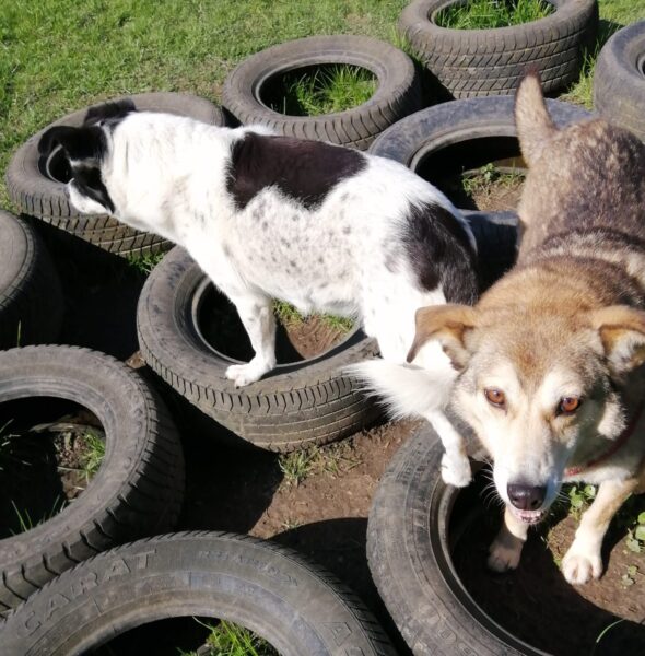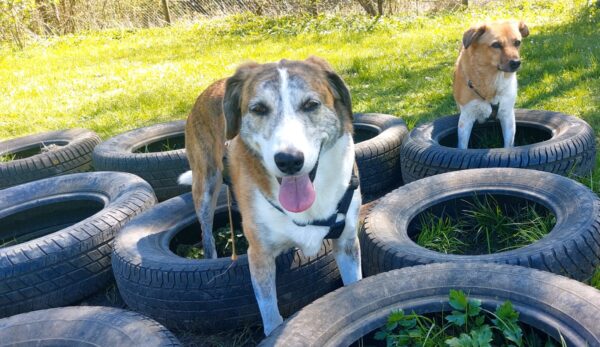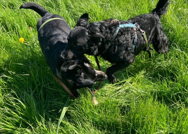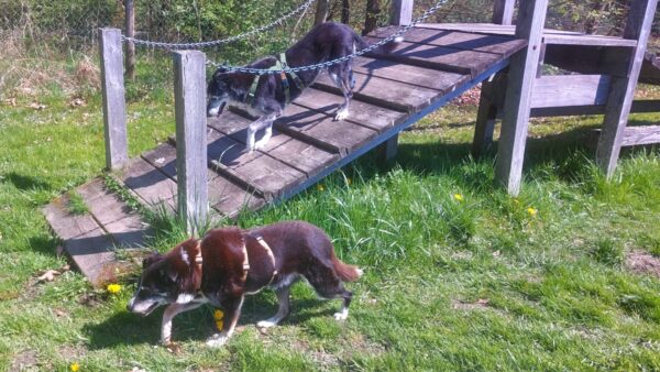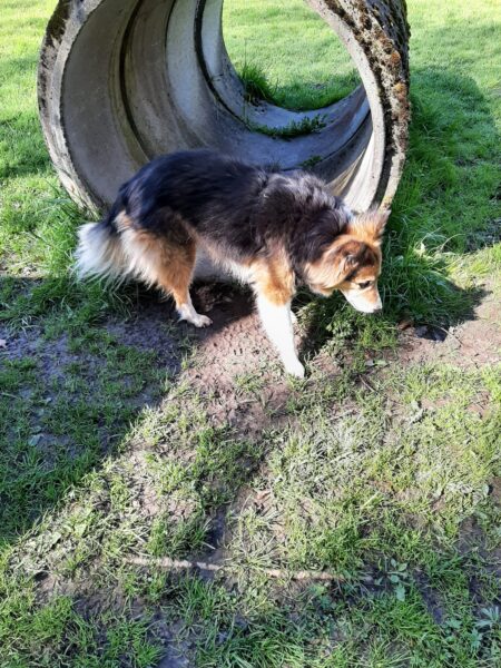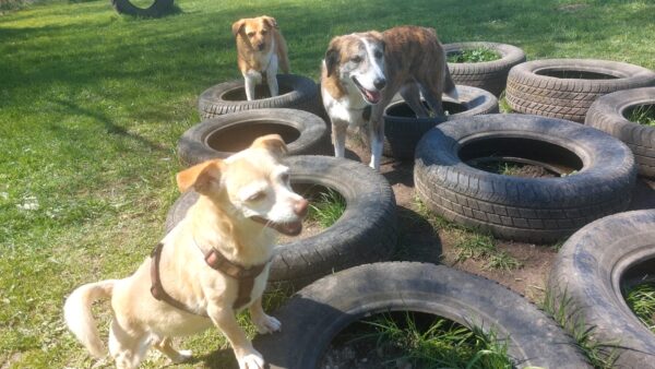 Fio und Flora freuten sich über einen Ausflug mit Jutta zum Hundeplatz. Die beiden sind flott über die Wiese zu den Geräten gelaufen, wobei Flora Jutta immer wieder zum Rennen aufforderte und Fio hat sich gerne seinen dicken Pelz kraulen lassen. Natürlich gab es auch eine Leckerchensuche bei den Reifen und ein paar Wettrennen mit vorbeikommenden Hunden am Zaun. 🙂