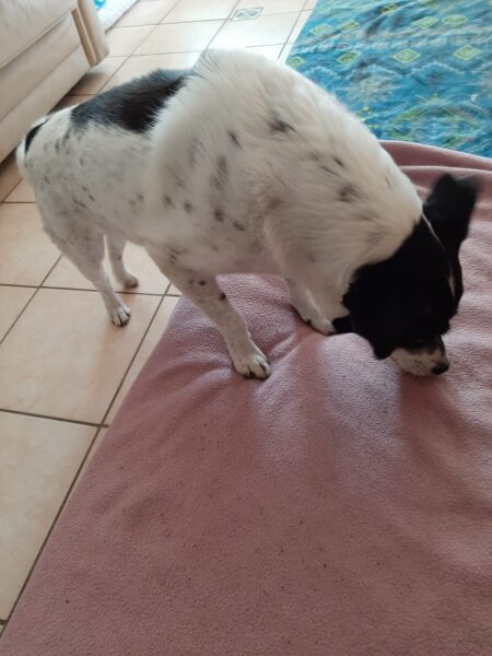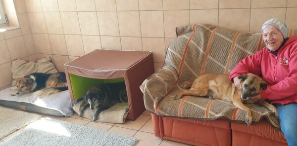 Über lieben Kuschelbesuch von Karin freuten sich Flora und Fio in ihrem Zimmer. 🙂 Auch Elfie bekam Kuschelbesuch von Karin in ihrem Zimmer. 😍 Dann unterstützte Karin Dani beim Aufbringen des Anti-Zeckenmittels bei einigen Hunden. Vielen lieben Dank dafür, Karin. 😍