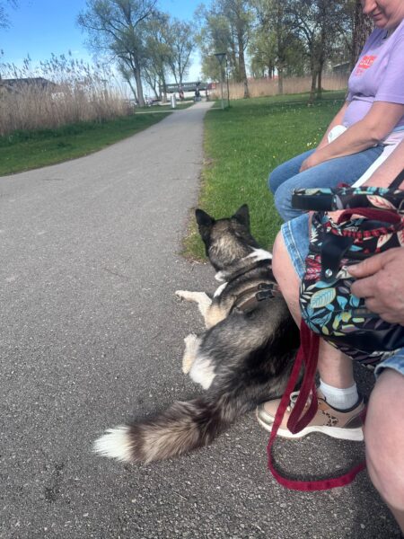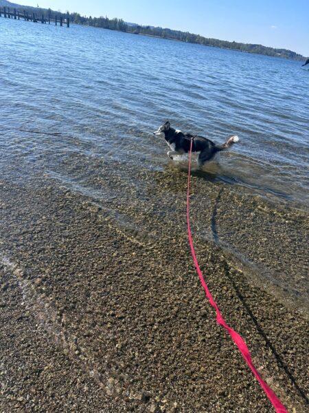 Patrcia ist mit Kirana zum Chiemsee gelaufen. Die beiden waren ganz entspannt unterwegs, Kirana hat viel herumgeschnüffelt und war baden. Ein paar Hundebegegnungen hatten sie auch, aber ein Spiel hat sich nicht ergeben. Ein kurzes Beschnüffeln, dann ging`s weiter. Wieder zurück im TierHeim hat Patricia noch eine Weile mit Kirana gekuschelt, bevor sie wieder fuhr und Kirana zufrieden eindöste. 🙂